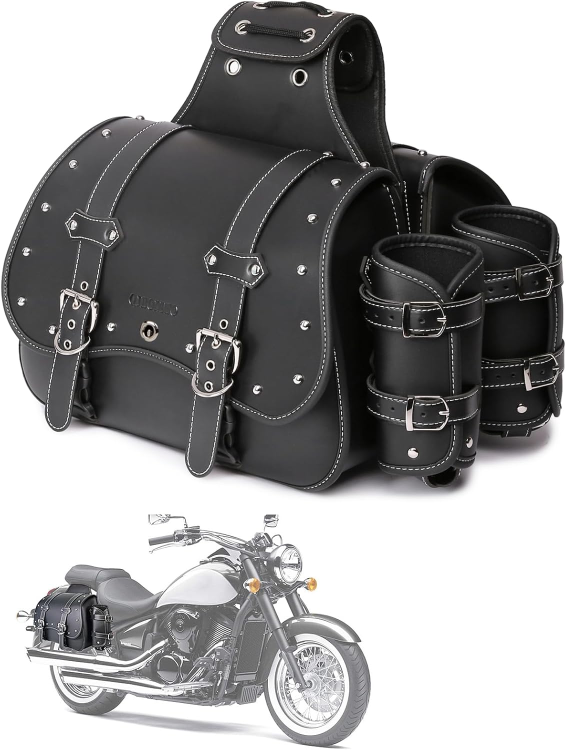 Dream Apparel Faux Leather Motorcycle Saddle Bags Studded Throw Over Saddlebags, PVC Motorcycle Side Bags for Honda Shadow Sportster Softail Dyna V-star (Black)