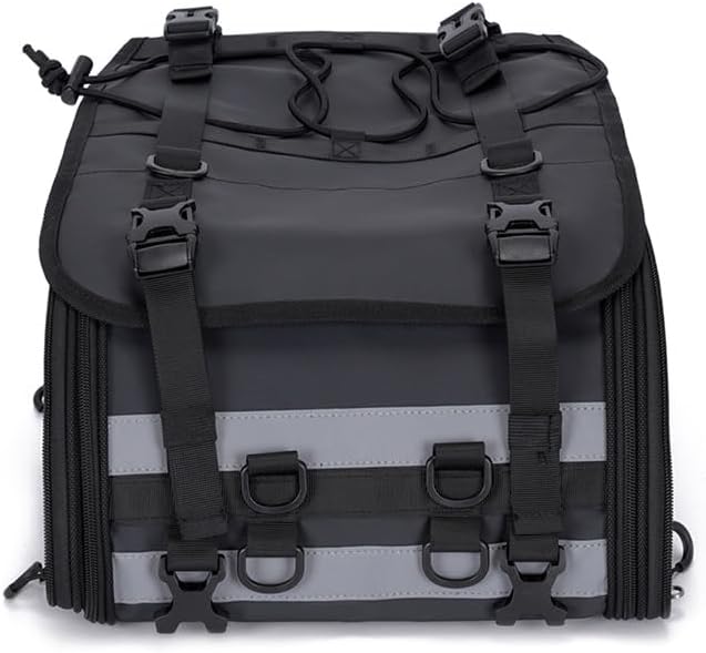 Motorcycle Tail Bag, Black Waterproof Oxford Fabric, Expandable 33L-47L Capacity, with Shoulder Strap, Motorcycle Luggage