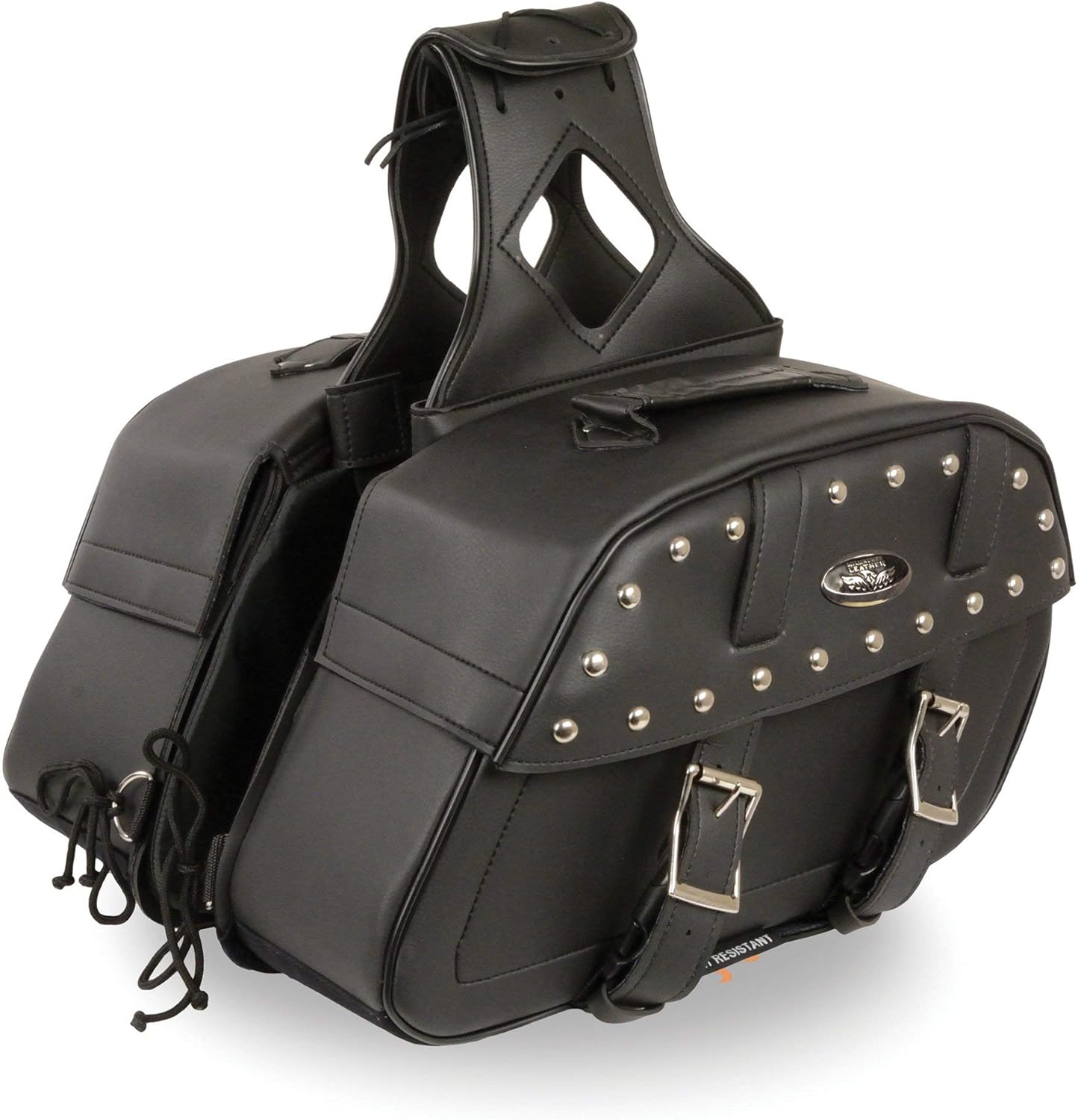 Milwaukee Leather SH61101ZB Black Zip-Off PVC Studded Throw Over Rounded Saddlebags
