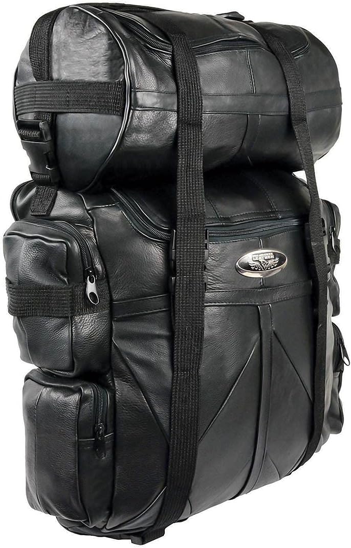 Milwaukee Leather SH537 Large Black Motorcycle Large Leather Deluxe Sissy Bar Pack Bag - One Size