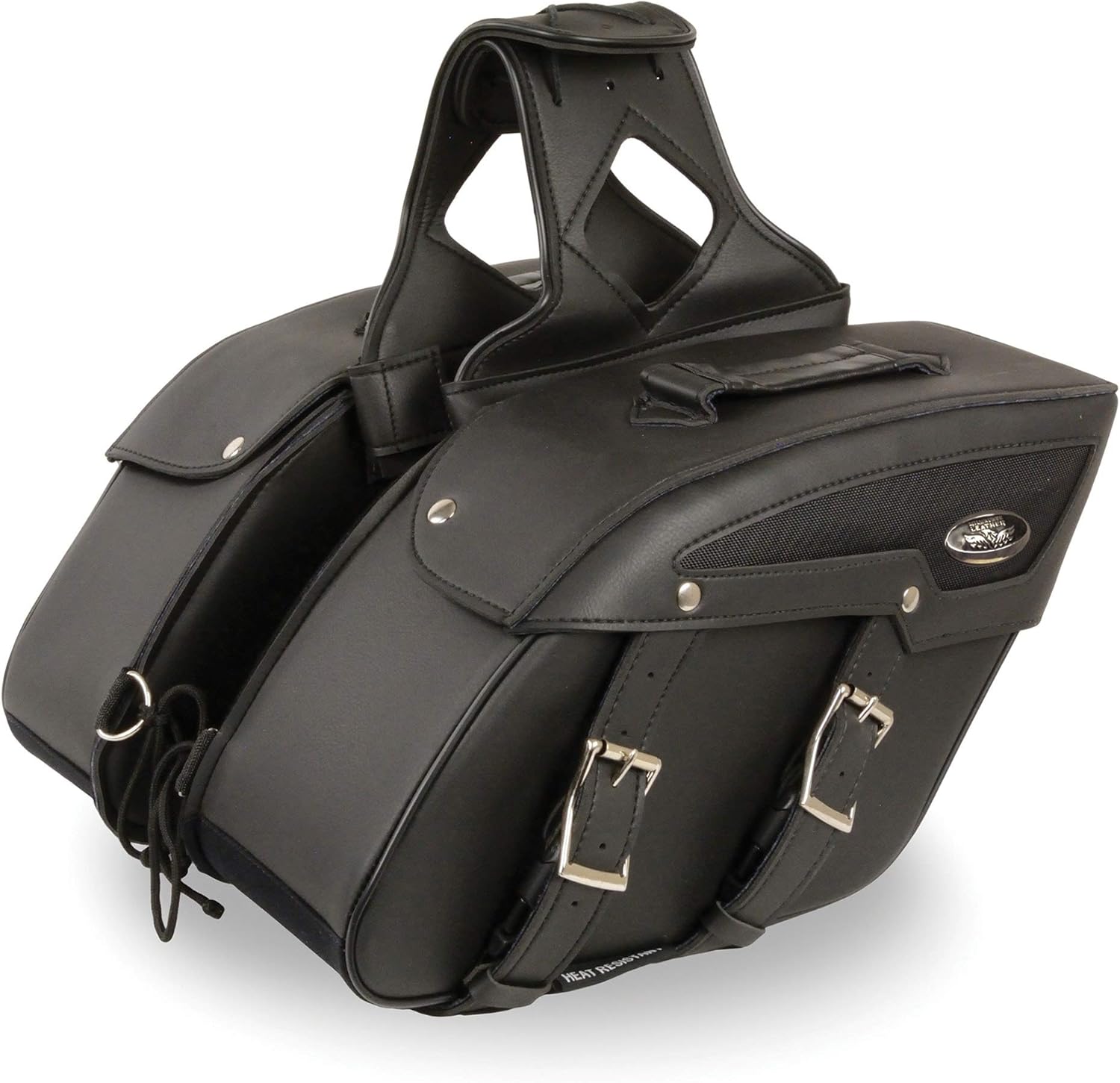 Milwaukee Leather SH65801ZB Black Medium Zip-Off PVC Slanted Throw Over Motorcycle Saddlebags - One Size