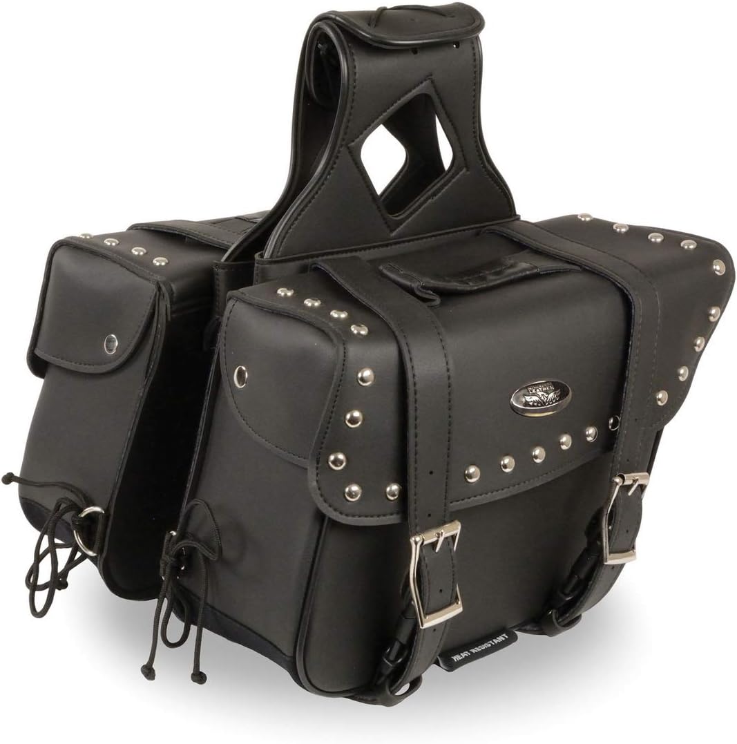 Milwaukee Leather SH57901ZB Black Medium Zip-Off PVC Slanted Throw Over Studded Saddlebags - One Size