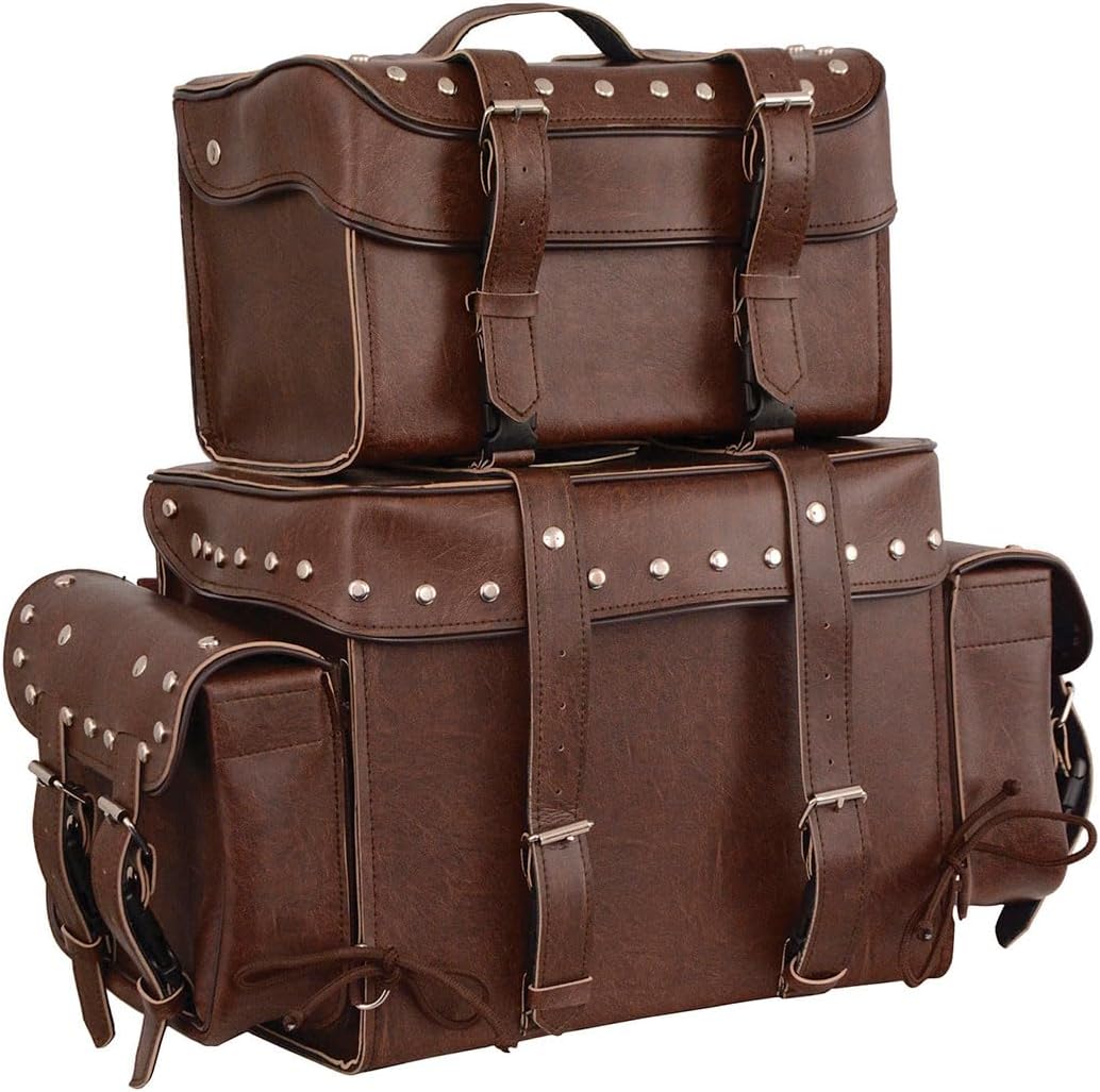 Milwaukee Leather MP8127RT Large Retro Brown 4-Piece Studded PVC Motorcycle Bag Touring Pack - One Size