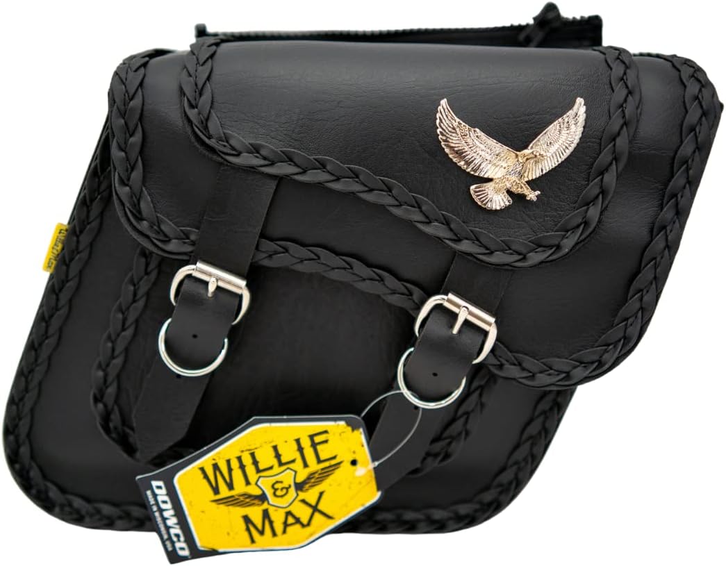 Dowco Willie & Max 58707-20 Braided Series: Synthetic Leather Compact Slant Motorcycle Saddlebag Set, Black, Universal Fit, 10 Liter Each/20 Liter Total Capacity