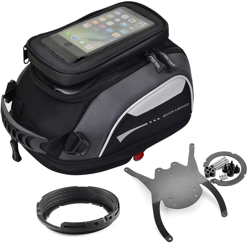 MENAT Motorcycle Tank Bag with Anti-Theft Quick Lock Base, 5-8L Expandable Storage, Phone Pocket, Rain Cover – For Most BMW Bike (FR2, F 650 GS/F 800 GS (08 & 17))