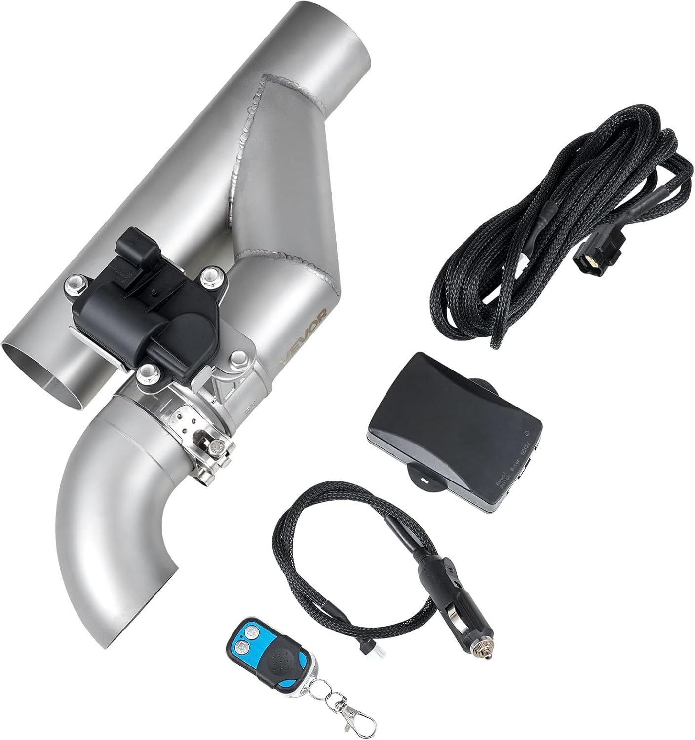 VEVOR Electric Exhaust Cutout, 2.5 Inch Universal Stainless Steel Exhaust Valve Kit with One Controller Remote Kit, Cut Out Valve, Y Pipe, Remote Control & Box, Fits Trucks, Sedans, Sports Cars, SUVs