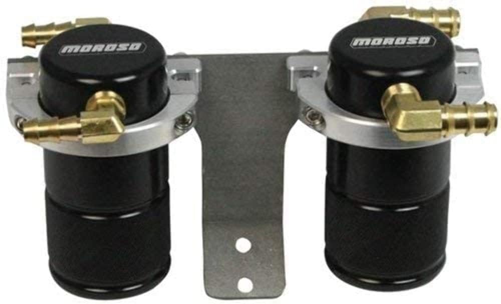 Moroso 85655 Air Oil Separator Catch Can, Small Body Black Finish, Fits 04-07 Subaru STI w/Front Mount Intercooler