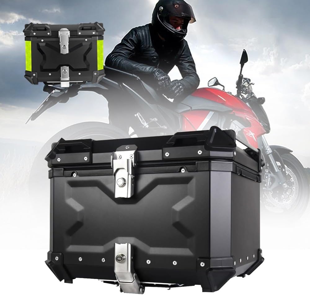 Motorcycle Trunk Top Case Waterproof Aluminum Motorcycle Tour Tail Box with Security Lock, for Storage Helmet Luggage, 28L 36L 45L 55L 65L 80L 100L(Black,28L)