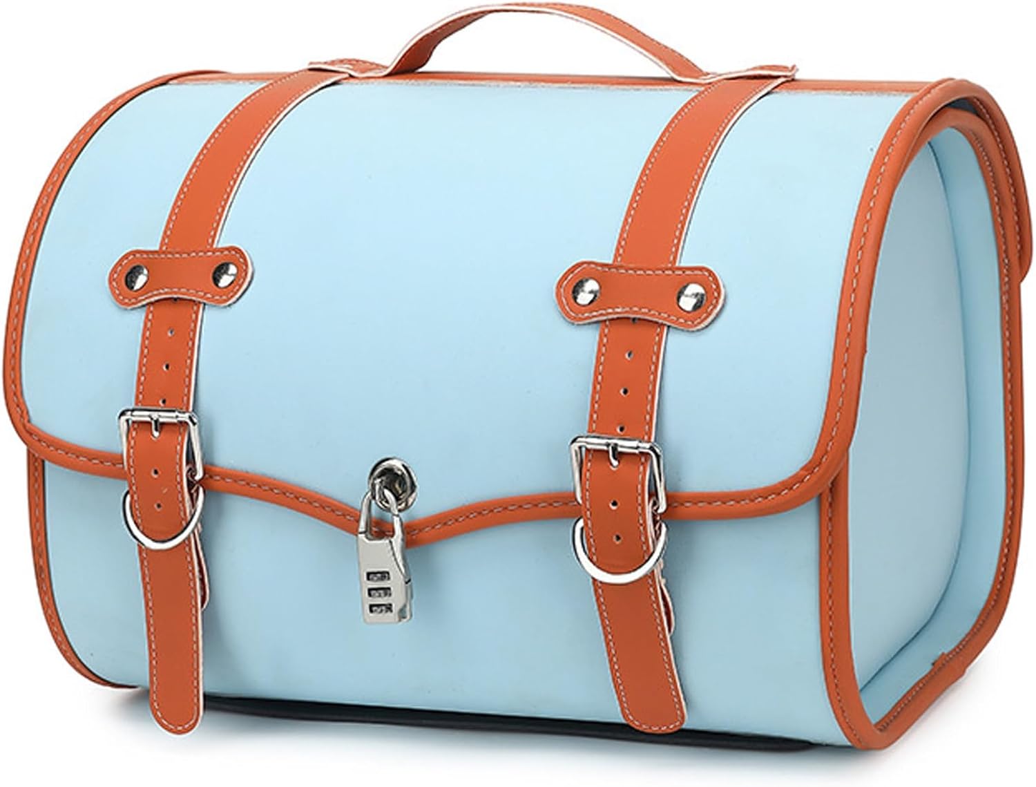 Leather Travel Bag Motorbike Tail Box Trunk Scooter Top Box Waterproof Travel Luggage Lockable Storage with Bracket Base Plate(Blue)