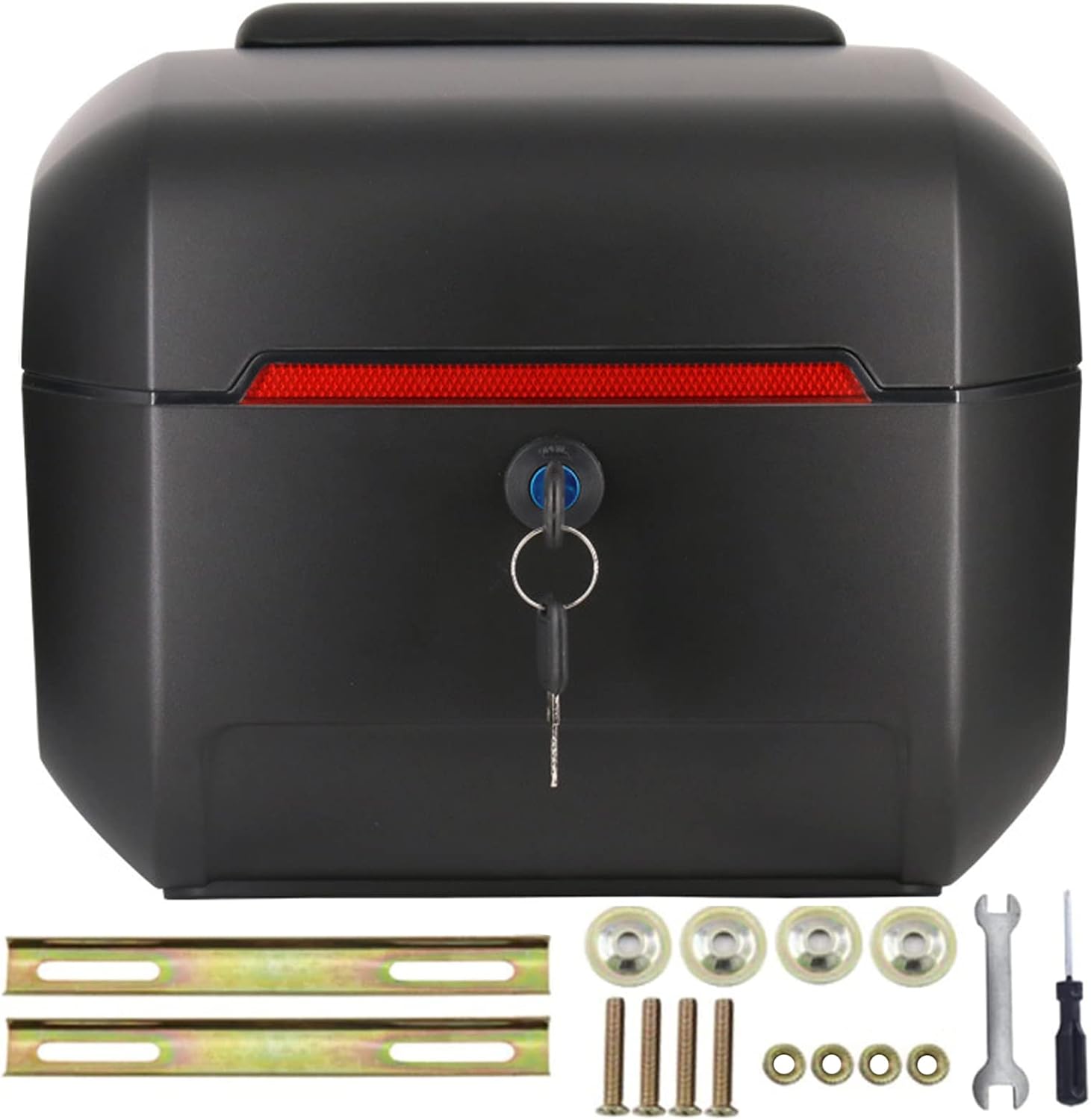 Universal Motorcycle Top Case 45L Motorcycle Tour Tail Box Scooter Trunk Luggage Dual-Key Waterproof Stainless Steel Carrier Case with Mounting Hardware