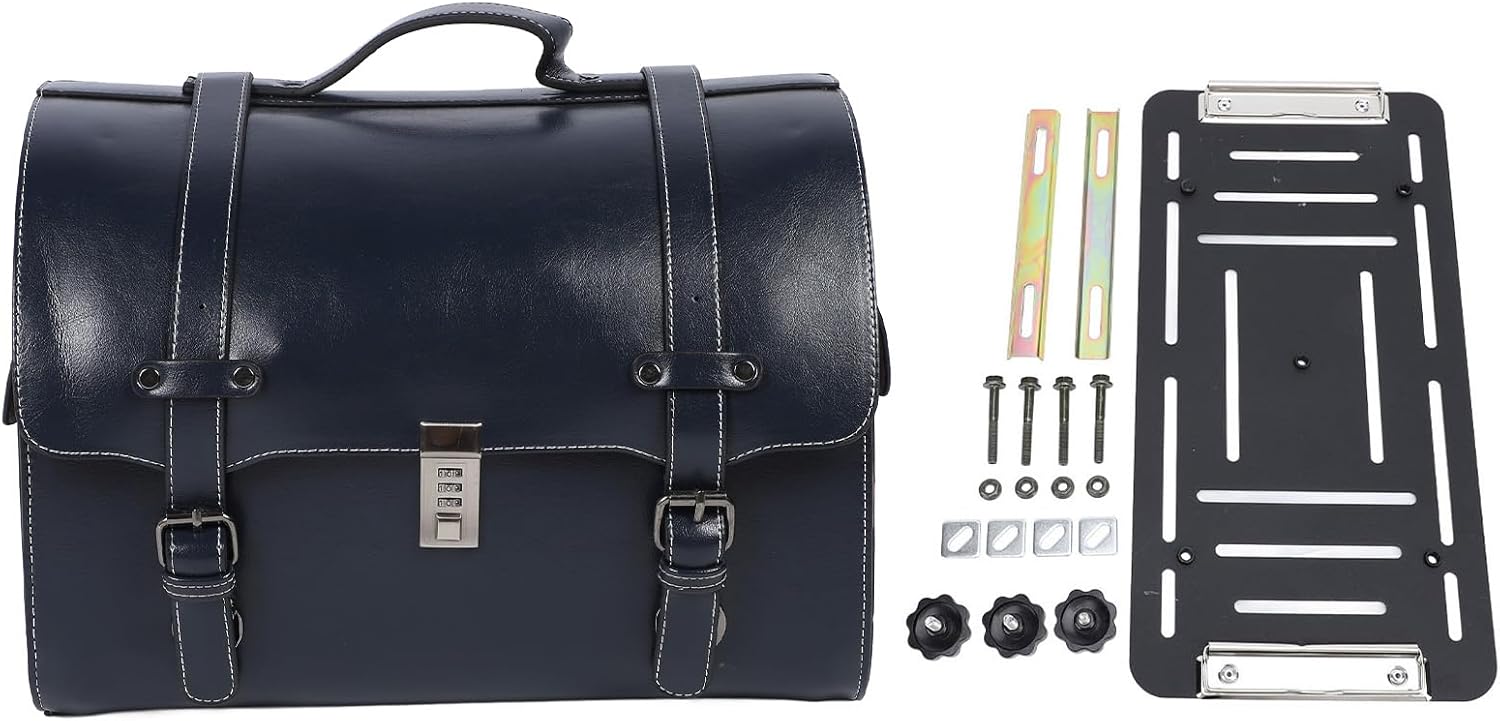 Motorcycle Tail Bag 29.5L Leather Rear Seat Luggage, Water, Quick Release - Combination Lock Security, Large Capacity, Suitable for Scooter and Electric Bike (Dark Blue)
