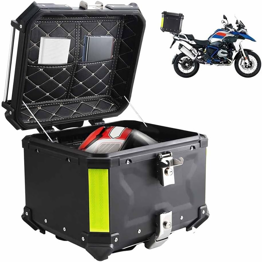 Motorcycle Top Box 28L 36L 45L 55L 65L 80L 100L Motorbike Trunk Top Case Aluminum Tour Tail Box with Security Lock, Motorcycle Luggage Top Box(Black,65L)