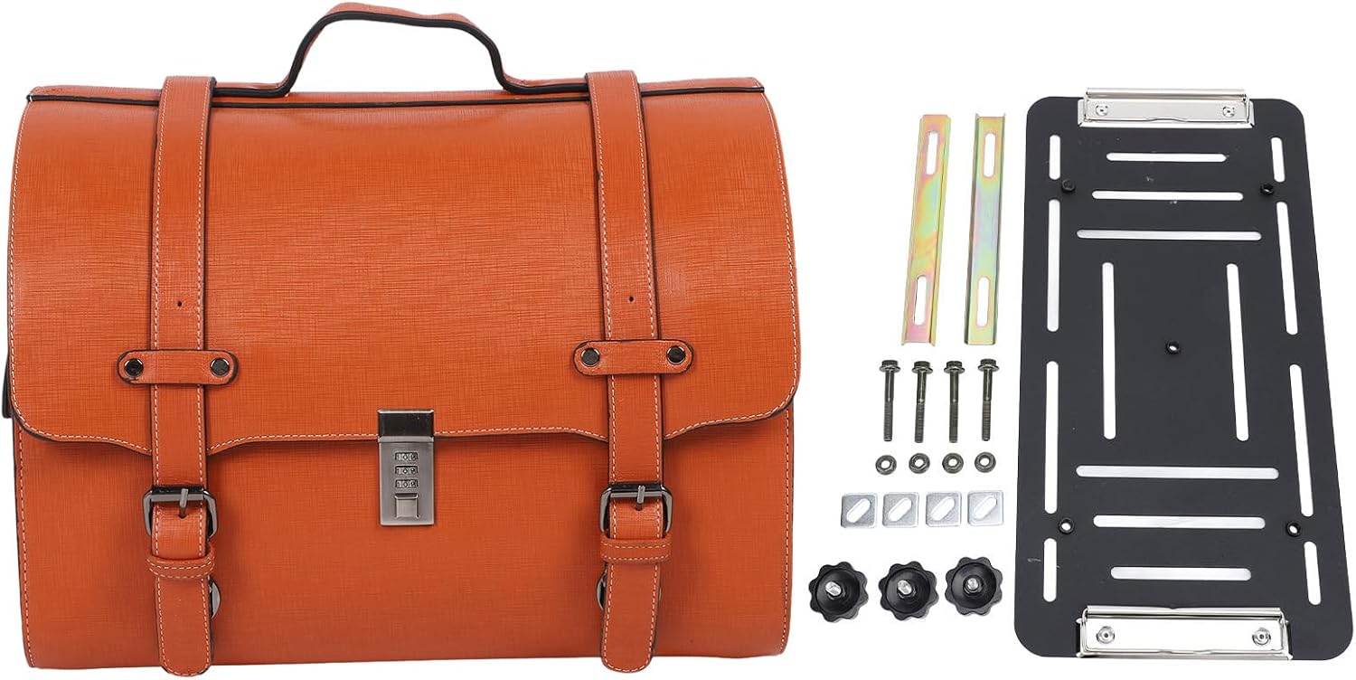 Motorcycle Tail Bag, 29.5L Capacity, Leather Construction - Stylish Waterproof Protection, Quick Release System, Ideal Motorbike Rear Rack Luggage Bag (Orange)