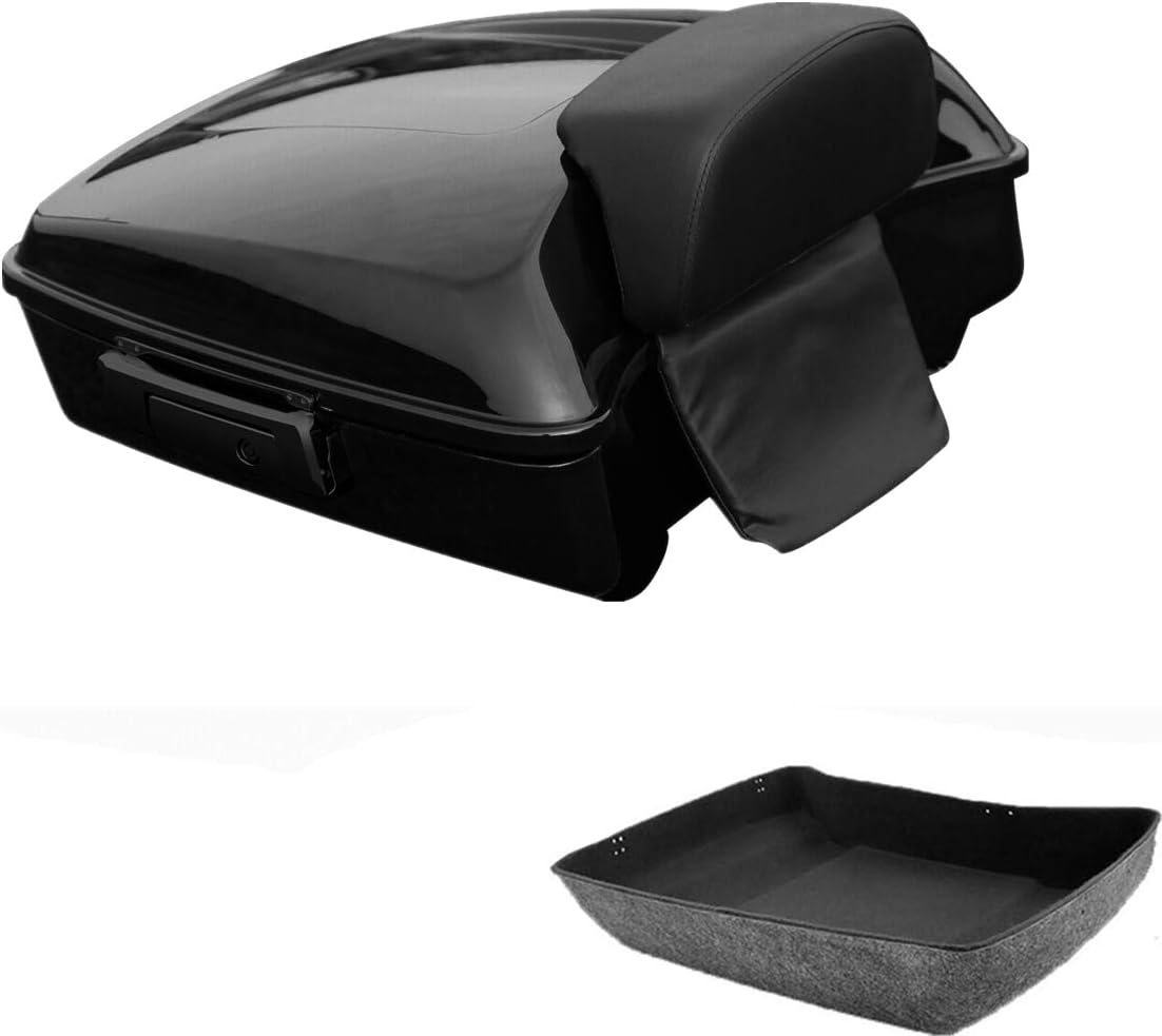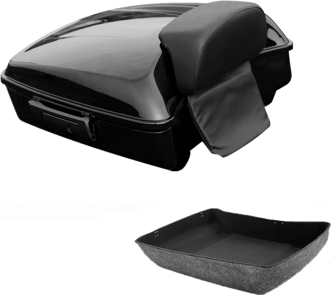 TCT-MOTORPARTS Black Razor Trunk w/Backrest Fits for Harley Touring 2014-2025
