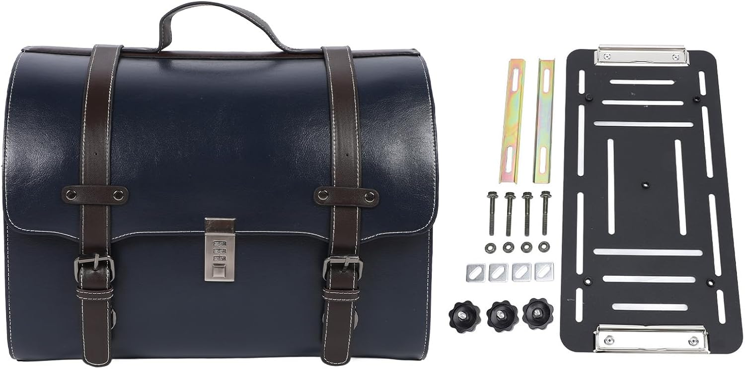 Motorcycle Tail Bag, Water Rear Seat Luggage, 29.5L Dark Blue - Quick Release Design, Combination Lock Security, Ideal for Motorcycle and Scooter Riders (Dark Blue with Brown Strip)
