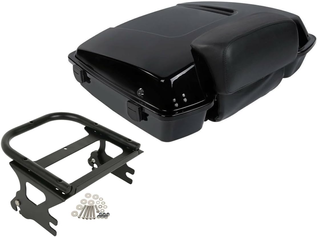 Green-L Vivid Black Razor Trunk with Backrest & Mount Rack Fit for Harley Touring 1997-2008