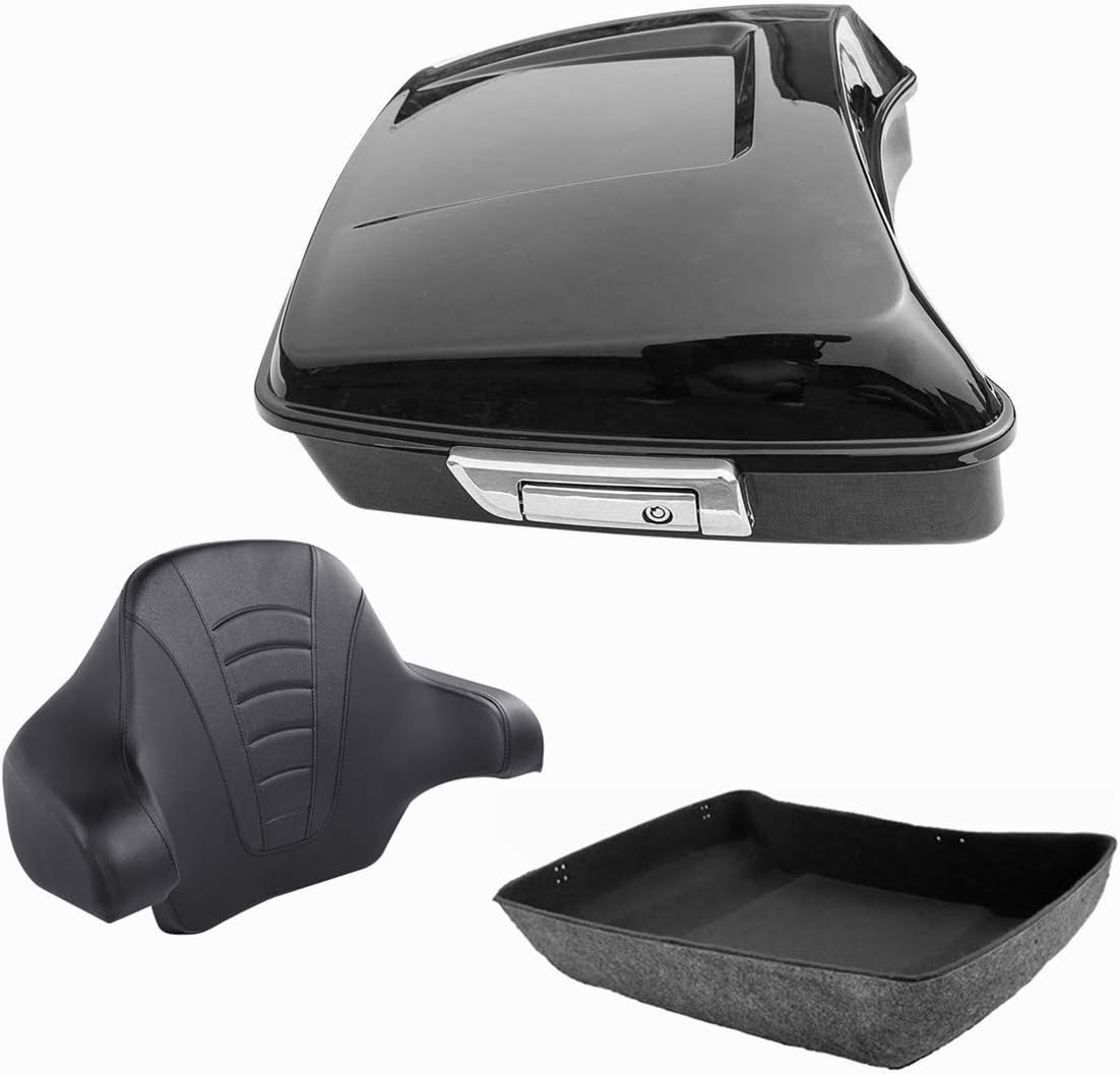 TCT-MOTORPARTS Chopped Trunk + Backrest Pad Fit For 2014-2025 Harley Touring Electra Road Glide Street Glide Electra Glide Road King CVO