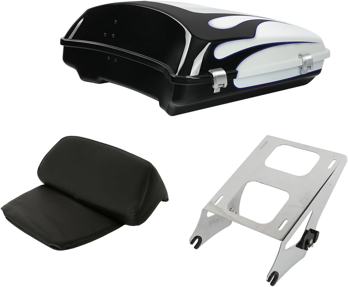 TCT-MOTORPARTS Razor Trunk Backrest Pad w/Mount Bracket Rack Fits for Harley Street Glide Road King 2014-Later White Amethyst Black Licorice Flames