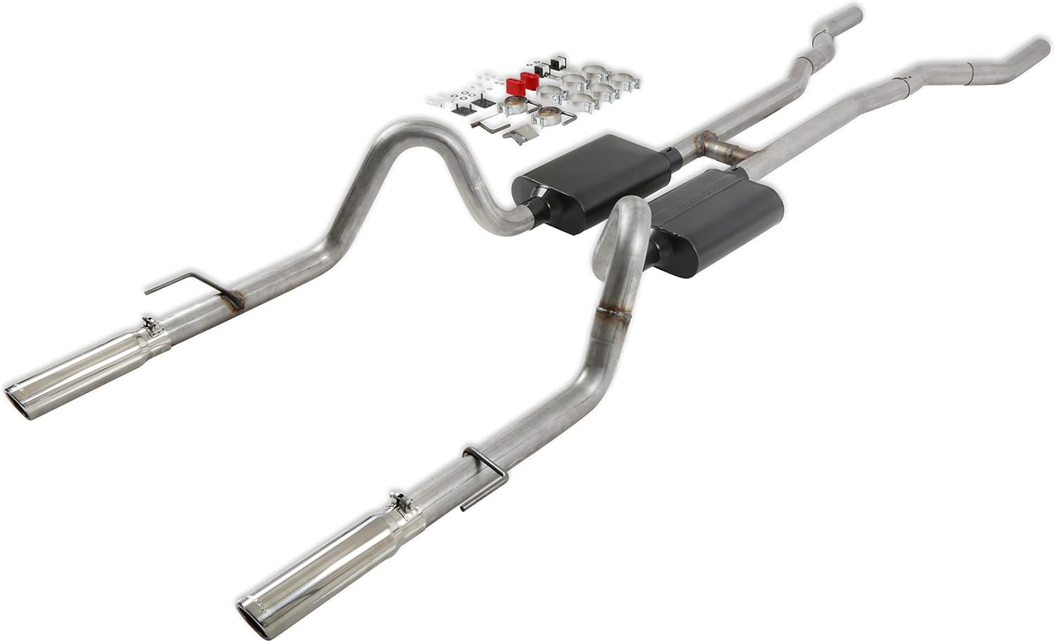 Flowmaster 817281 American Thunder Crossmember-Back Exhaust Kit 2.5 Inch Stainless Steel with 3 Inch Polished Stainless Steel Tips Compatible with 1967-1970 Ford Mustang with V8 engine and headers