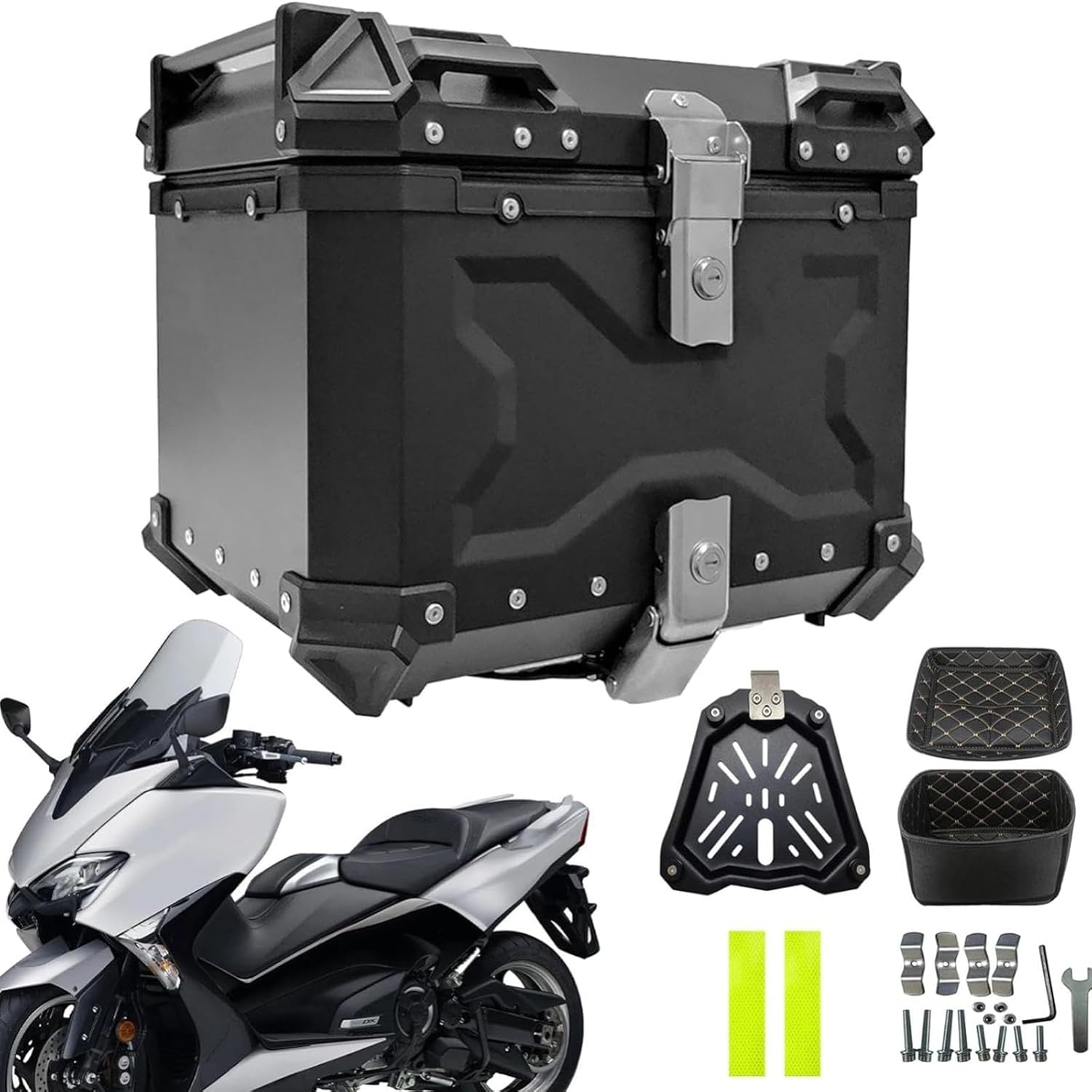 Aluminum Top Bag for Motorcycle Trunk Luggage Top Lock Storage Carry Bag 45L 55L 65L 80L 100L Waterproof Motorcycle Top Box with Motorcycle Backrests and Base Plate Black,100L