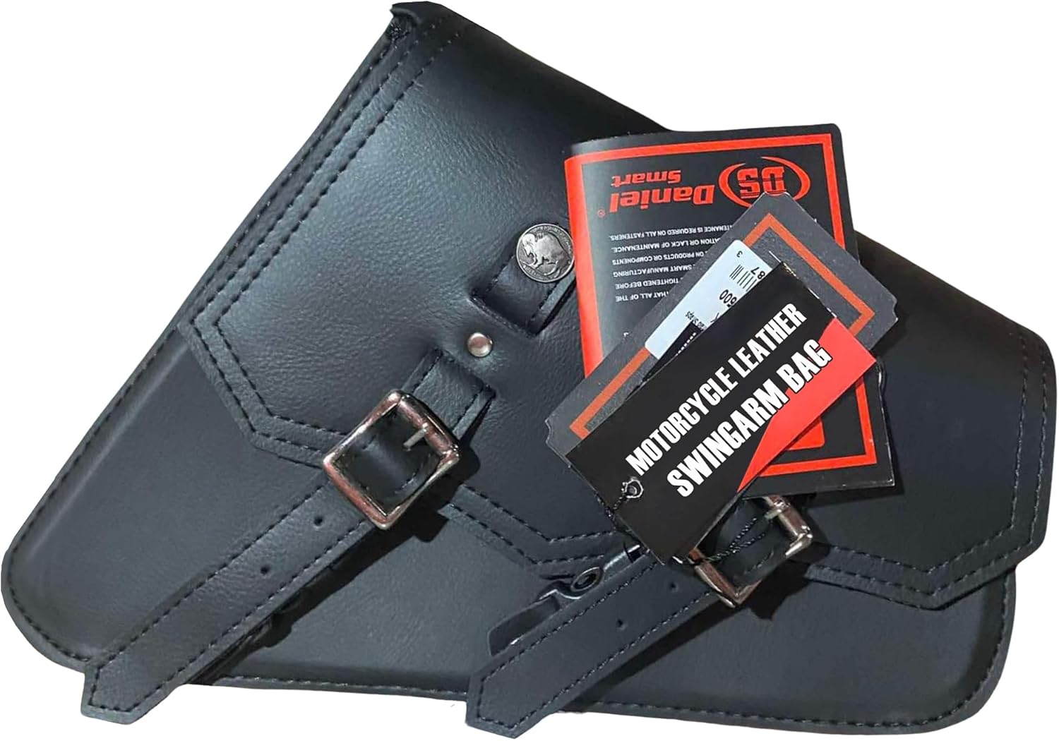 Daniel Smart Motorcycle Leather Swingarm Bag Black SWING ARM BAG - Motorcycle Saddle Bag Left Side Secure Tool Bag for Bike