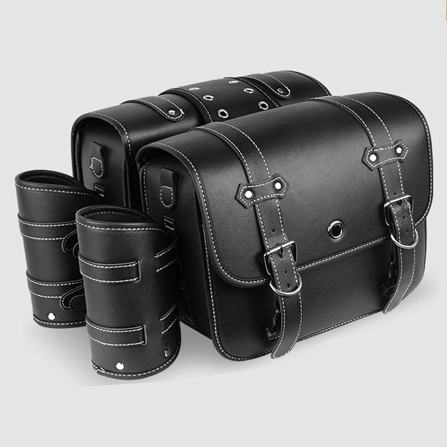Daniel Smart Motorcycle Leather Swingarm Bag Black Swing Arm Bag with Bottle Holder Built-in Gun and Ammo holster.