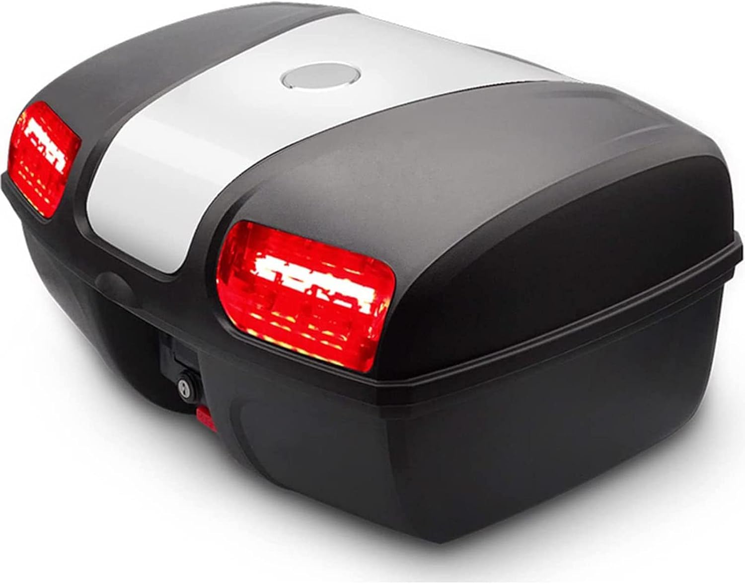 47L Motorcycle Tour Tail Box with Comfortable Backrest and Night Reflective Light Bar, Scooter Trunk Luggage Top Lock Storage Carrier Case (Color:D)