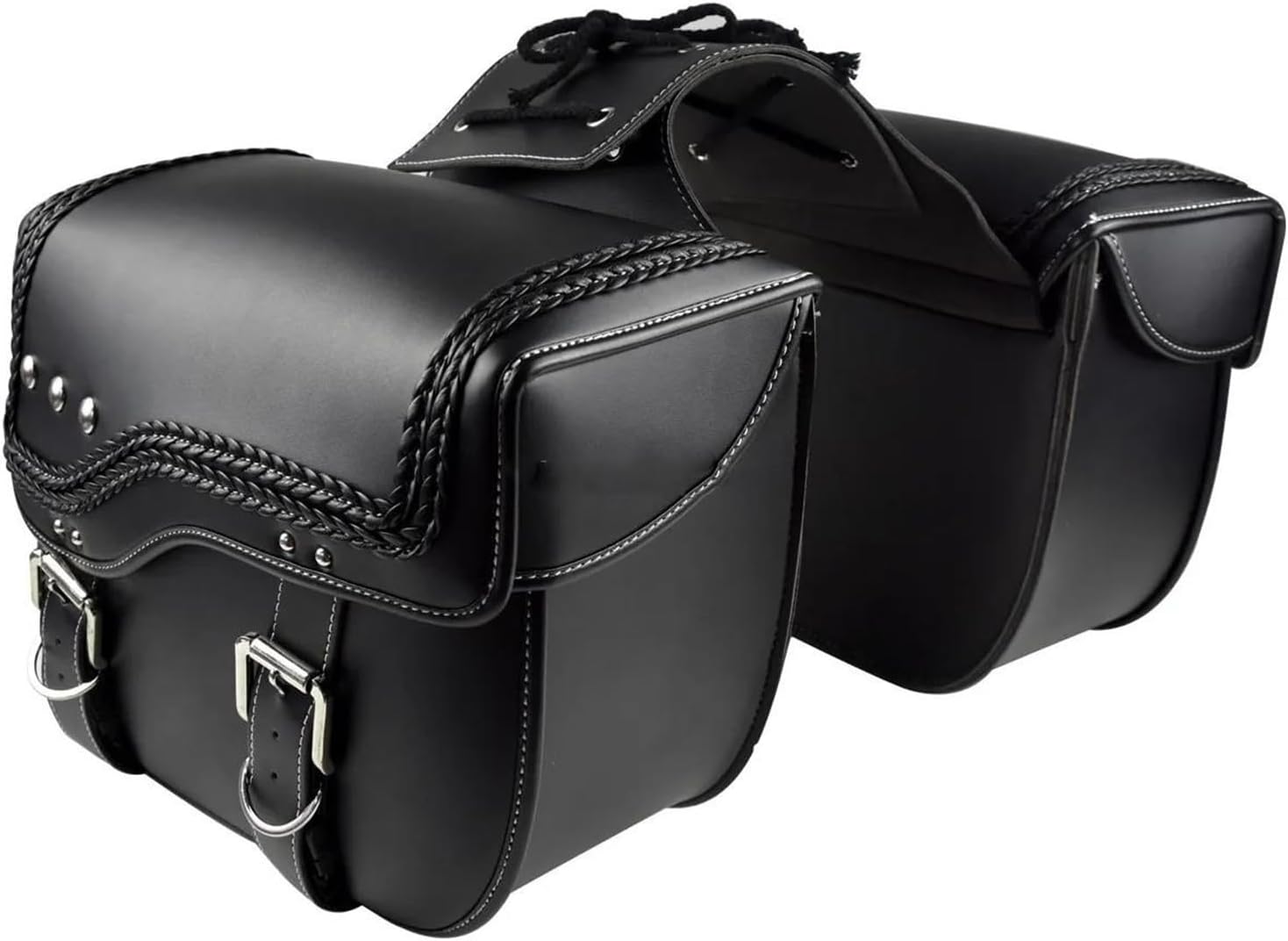 PU Leather Retro Saddle Bag Motorcycle Luggage Side Tool Universal for Yamaha(Black Left Side)