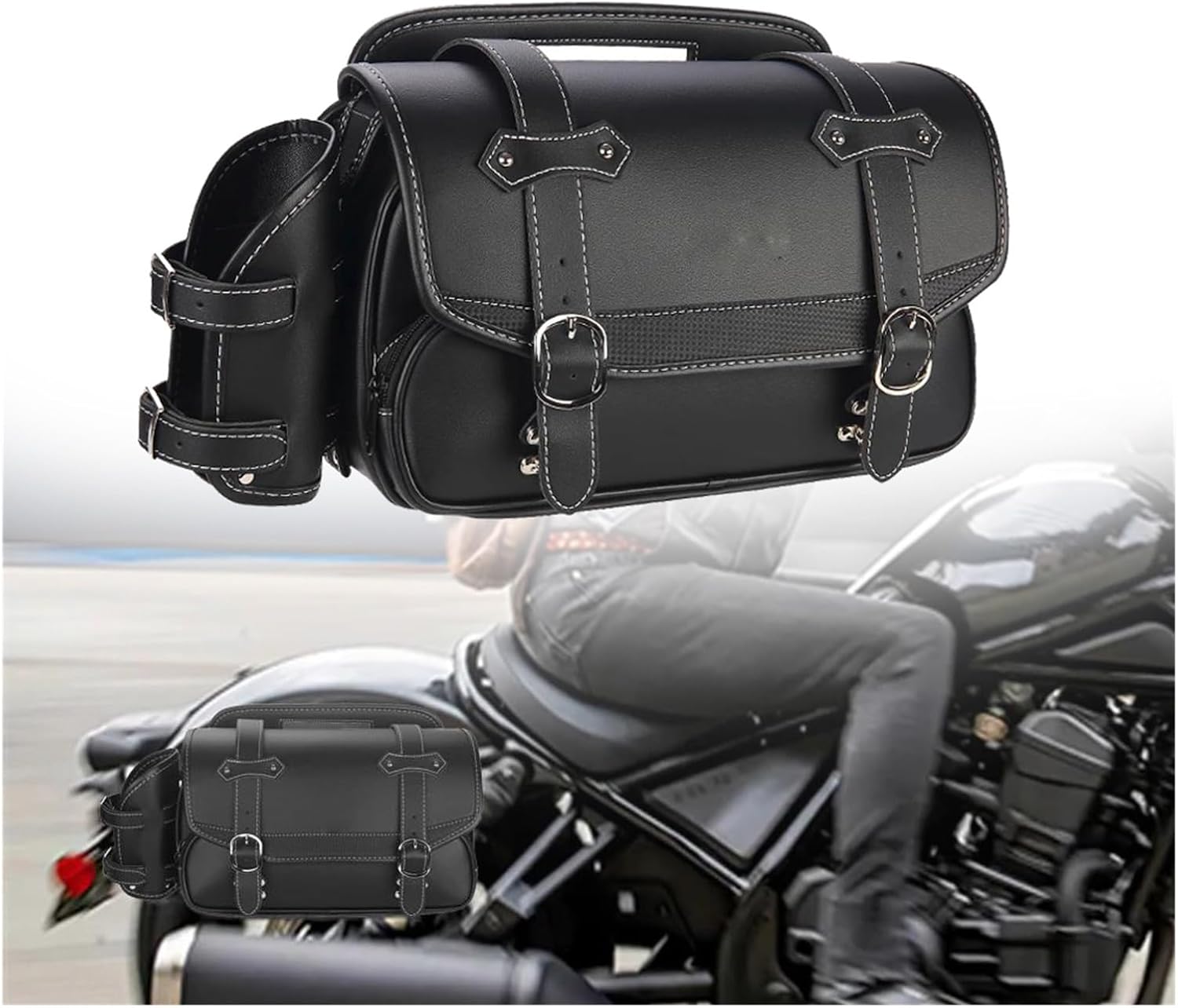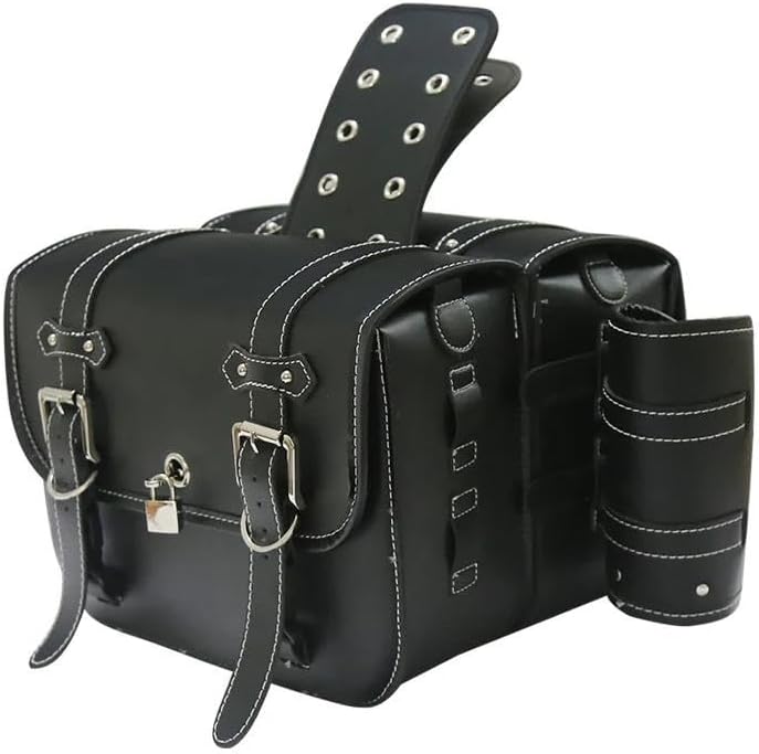 Left Right PU Leather Motorcycle Saddlebag Side Tool Luggage for Suzuki(Black2)