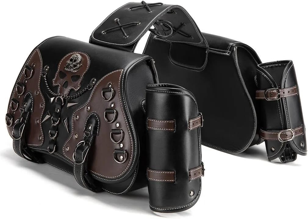 Motorcycle Saddlebag Throwover PU Leather Side Gear Bag for Harley(Brown2)