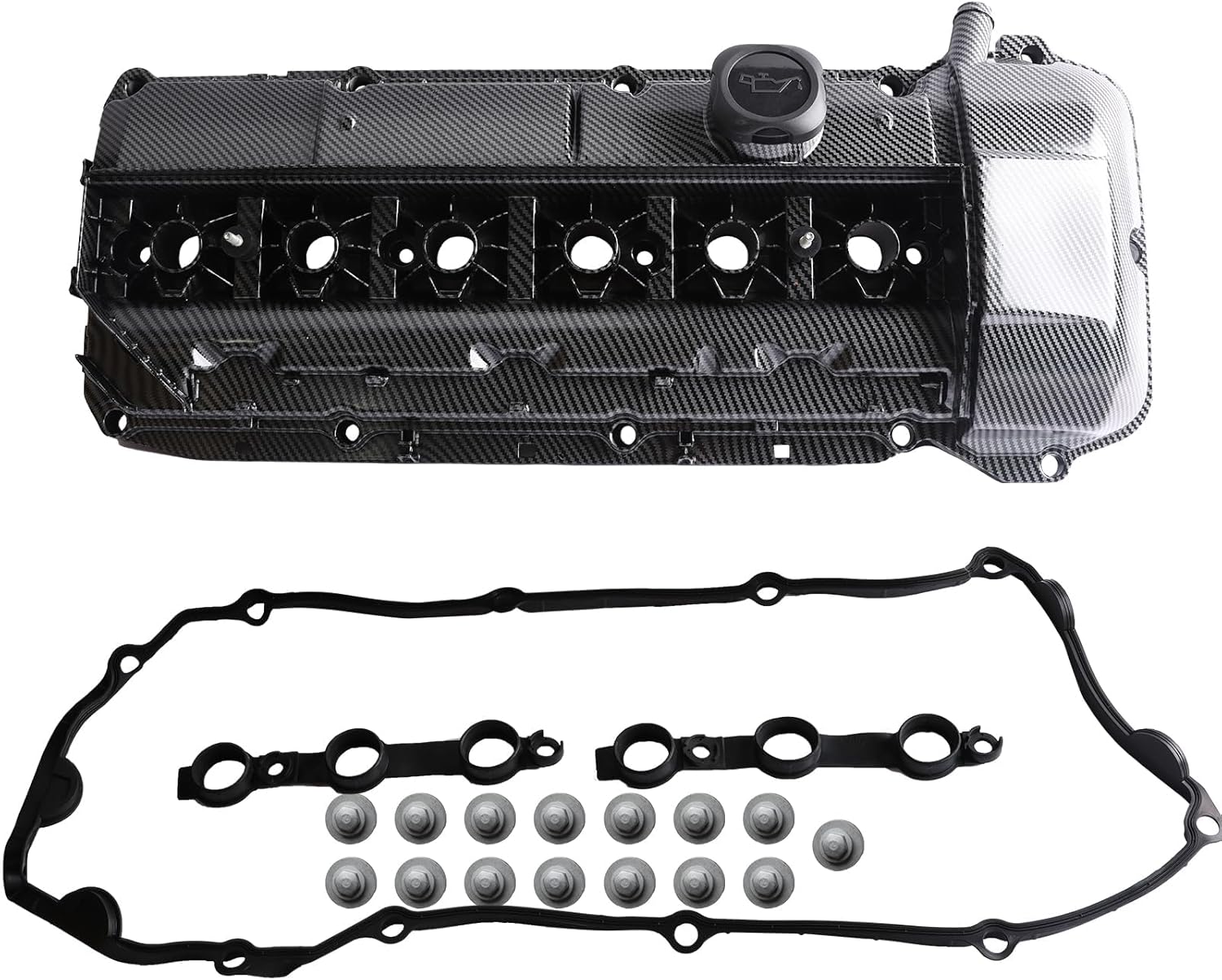 MITZONE Carbon Strip Type Aluminum Engine Valve Cover Kit Compatible with 2003-2007 BMW X5 X3 320i 530i 525i 325i 325ci 325xi 330i 330xi 330Ci z4 2.5L 3.0L OE 11127512839 11120030496