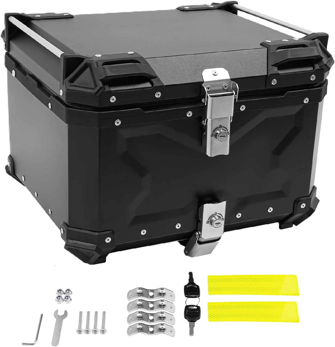 55L Motorcycle Top Case, Large Capacity Aluminum Motorcycle Rear Box with Security Lock, Aluminum Motorbike Trunk for Helmet, Rain Gea, Universal Mount for Touring & Commuter Bikes