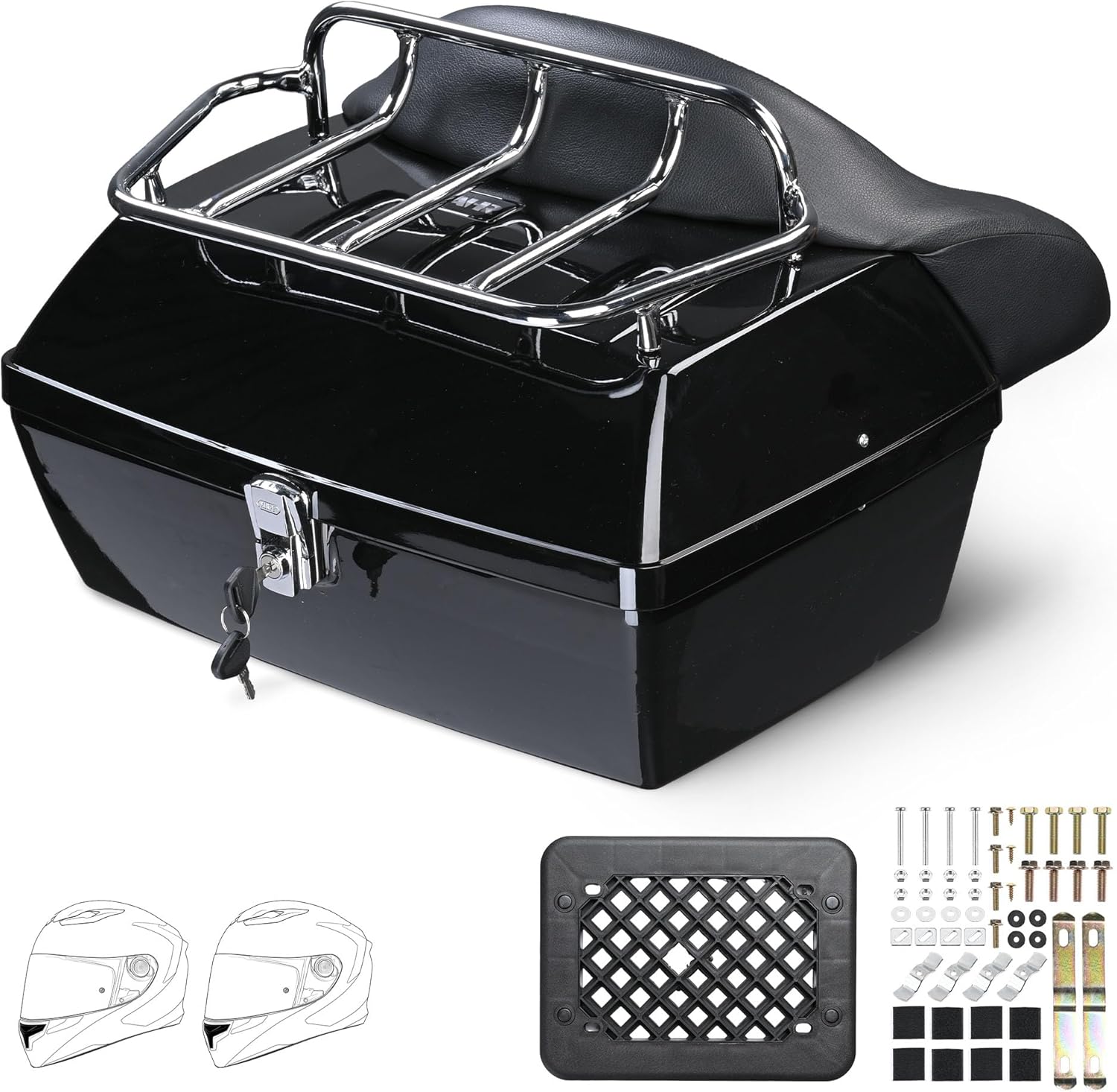 AW Yescom 48L Universal Motorcycle Tail Box Top Case Luggage with Top Rack & Backrest for Harley Road King