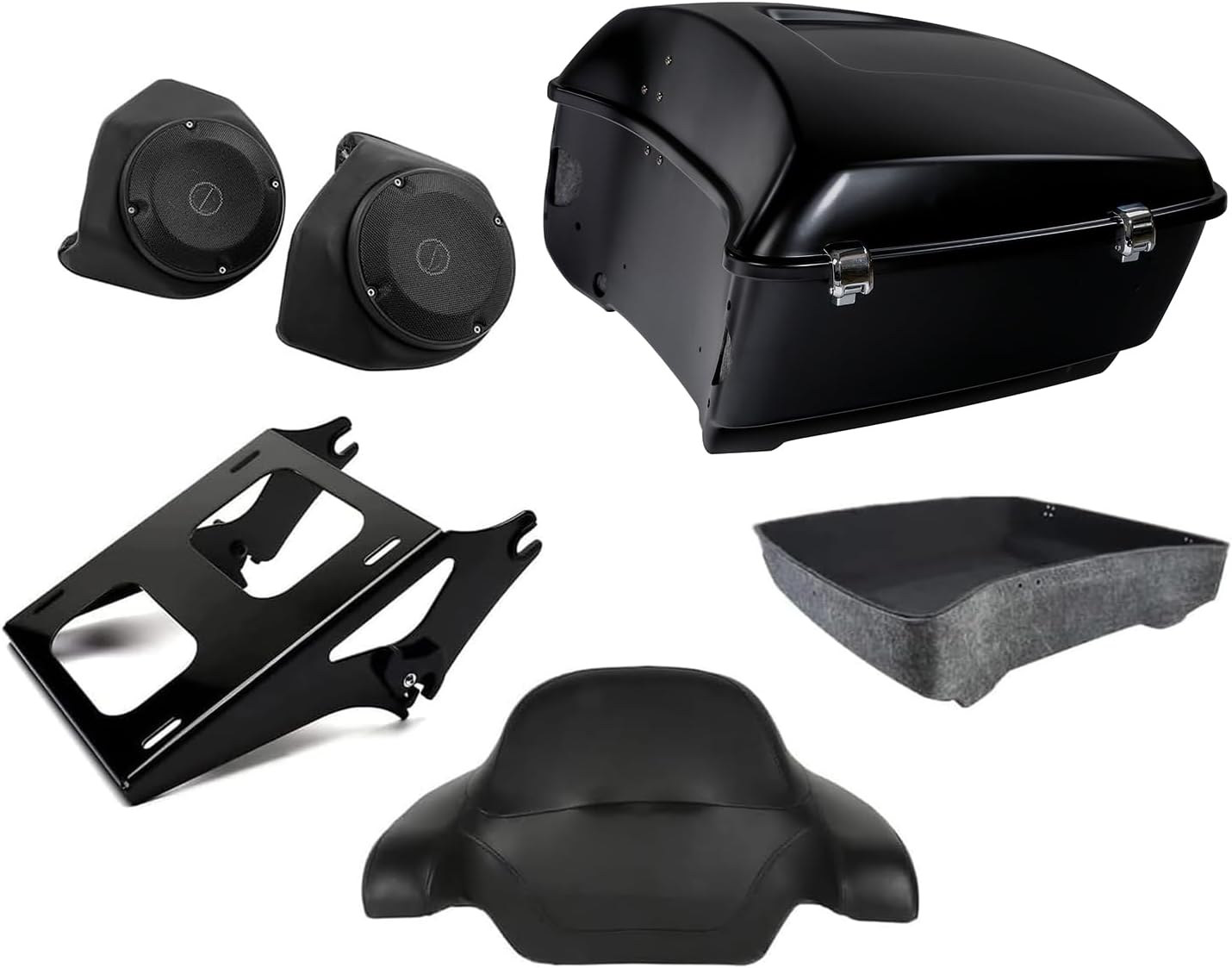 TCT-MOTORPARTS Black Denim King Trunk Backrest Mount Plate w/Speakers Fit For Harley Touring Models Road Glide Special Street Glide 2015 2017 2022