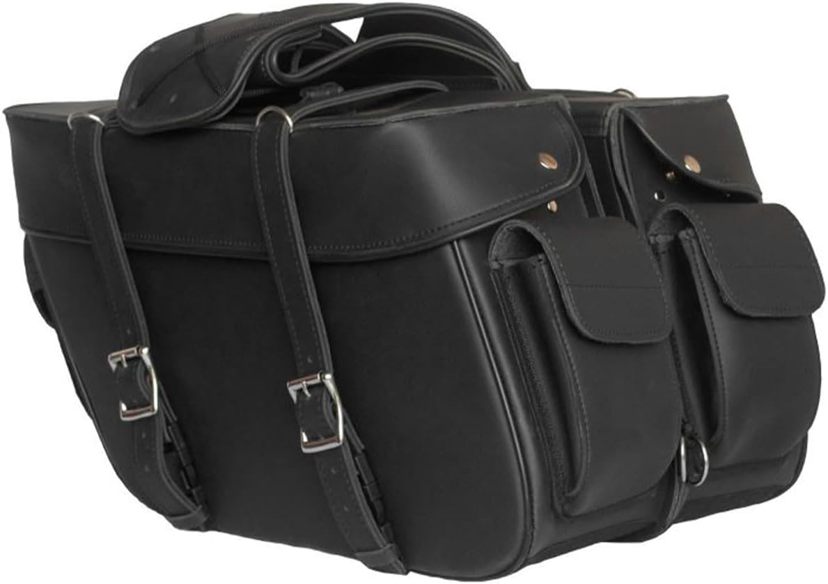 Motorcycle Saddle Bags Studded PVC Motorcycle Luggage Bag with Gun Holsters For Softails Sportsters and Choppers Waterproof Tool Bags For Motorcycle (14" x 12" x 10.5", No Stud-Style 2, Black PVC)