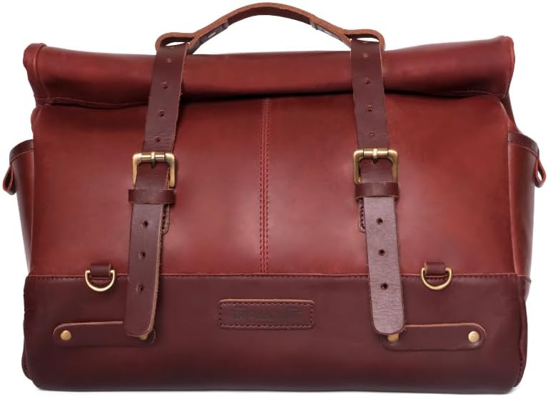 Trip Machine Company Motorcycle Leather Outlaw Saddlebag Bag with Mounting strap and Rain Cover (Cherry Red, 17 L)