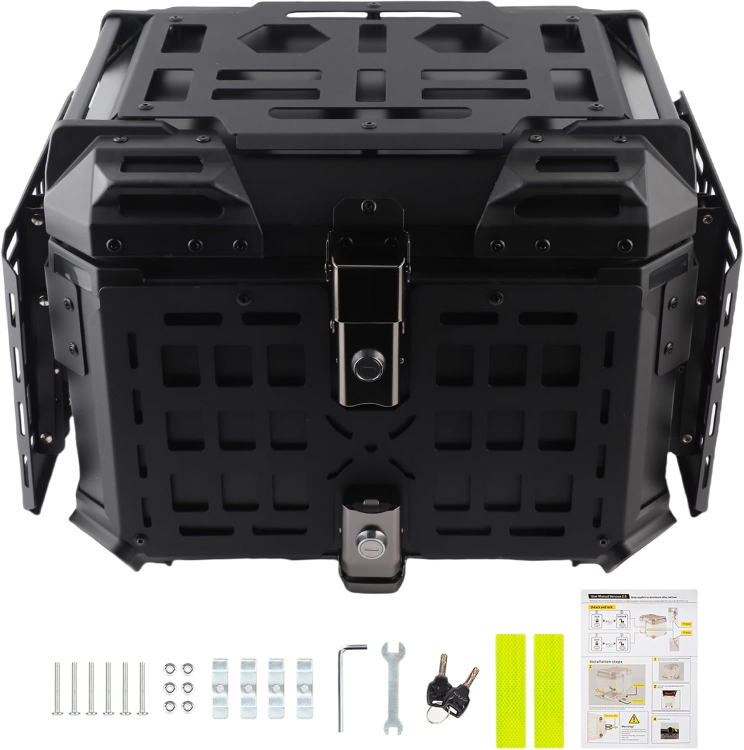 Motorcycle Top Case, 45L Aluminum Alloy Top Case with Anti Theft Lock and Quick Release Mount, Durable Rear Storage for Touring and Commuting, Includes Reflective Stickers