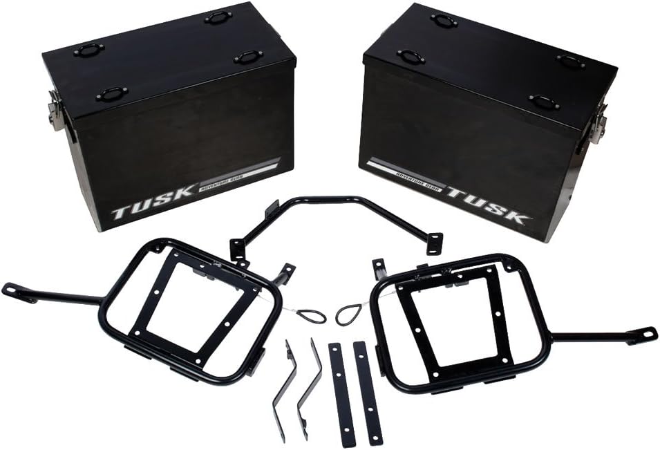 TUSK V2 Aluminum Pannier Boxes with Steel Pannier Racks- Fits the KAWASAKI KLR650 2008-2018 - Includes handles and oil filter (Black, Large)