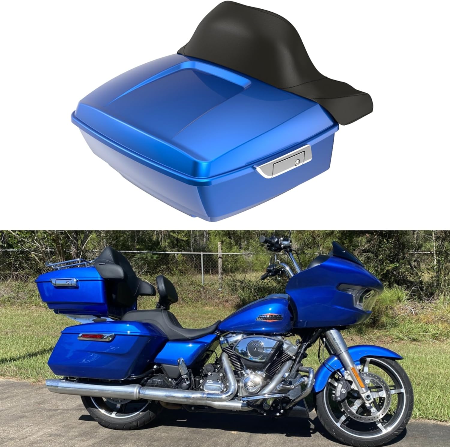 Advanblack 2024 Road Glide Tour Trunk Pack Wrap-Around Backrest For Harley Touring 1997+ 2023 2024 2025 H-D RG, Street Glide FLHX (King Tour Trunk Pack Chrome Latch, Blue Burst)