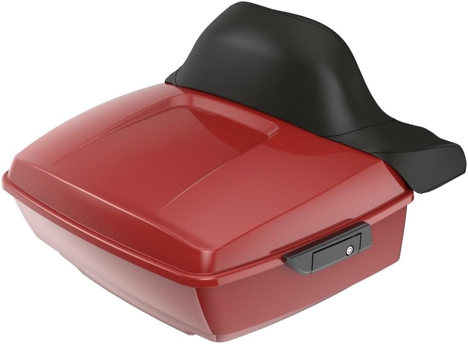 Advanblack Red Tour Trunk Pack Black Latches +Backrest Pad fits for '97-'24 Harley Touring Models Road King, Road Glide, Street Glide, Ultra-Classic (Red Hot Sunglo, King Tour Trunk Pack)