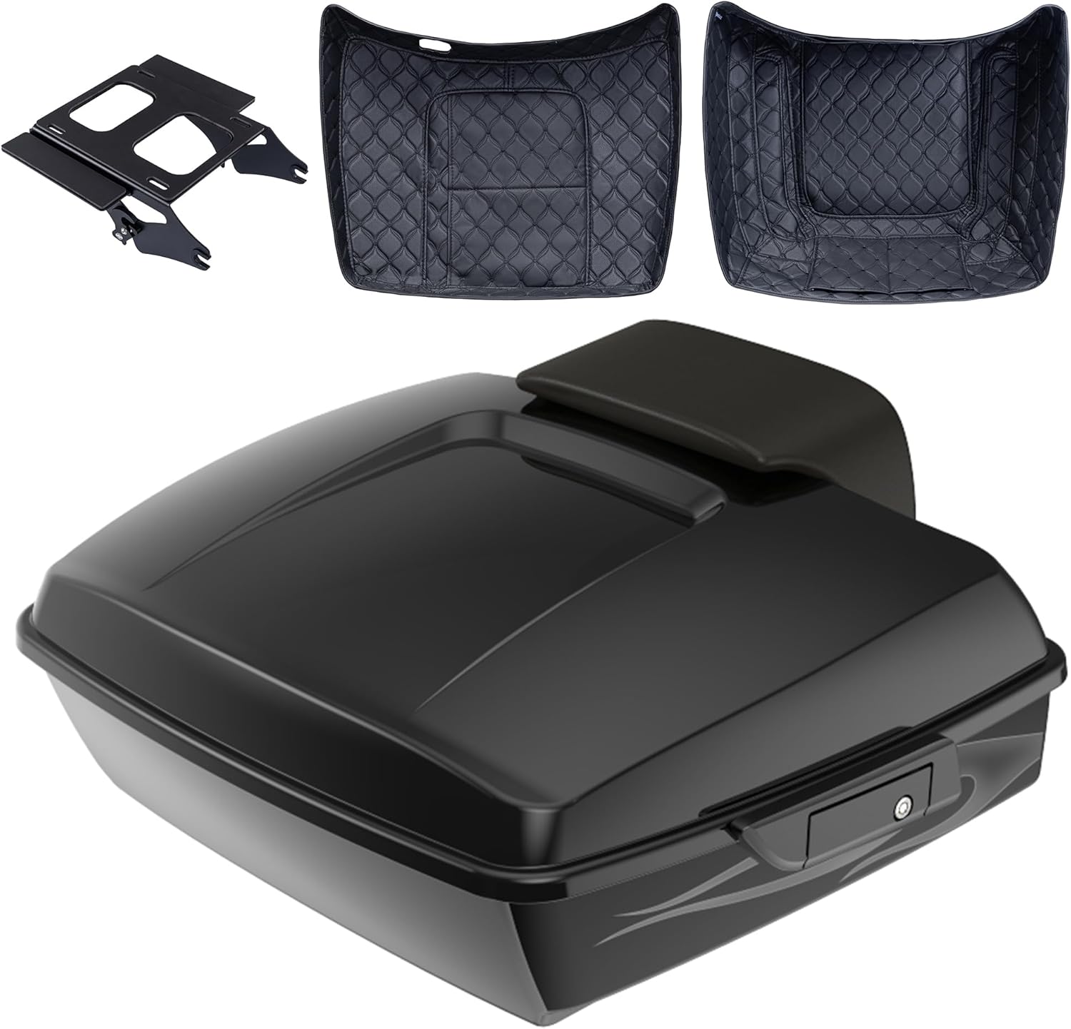 Advanblack 2024 Road Glide Chopped Tour Trunk Pack Compatible with Harley Touring CVO Road Glide, Street Glide, 2023.5 2024 2025 Detachable Mounting Rack, Backrest & Trunk Liners (Midnight Firestorm)