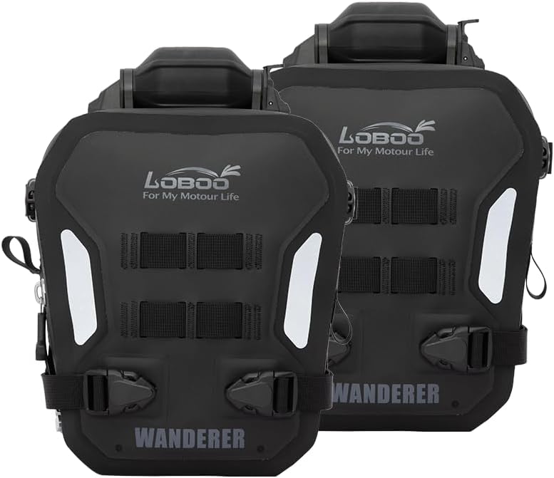 Loboo BHGB05T Wanderer Inflatable Motorcycle Crash Bar Bags – 6L Waterproof Front Bumper Bags (2PCS), Anti-Theft Lockable, Air-Cushion Protection, Fits 25mm Bars for Adventure Touring