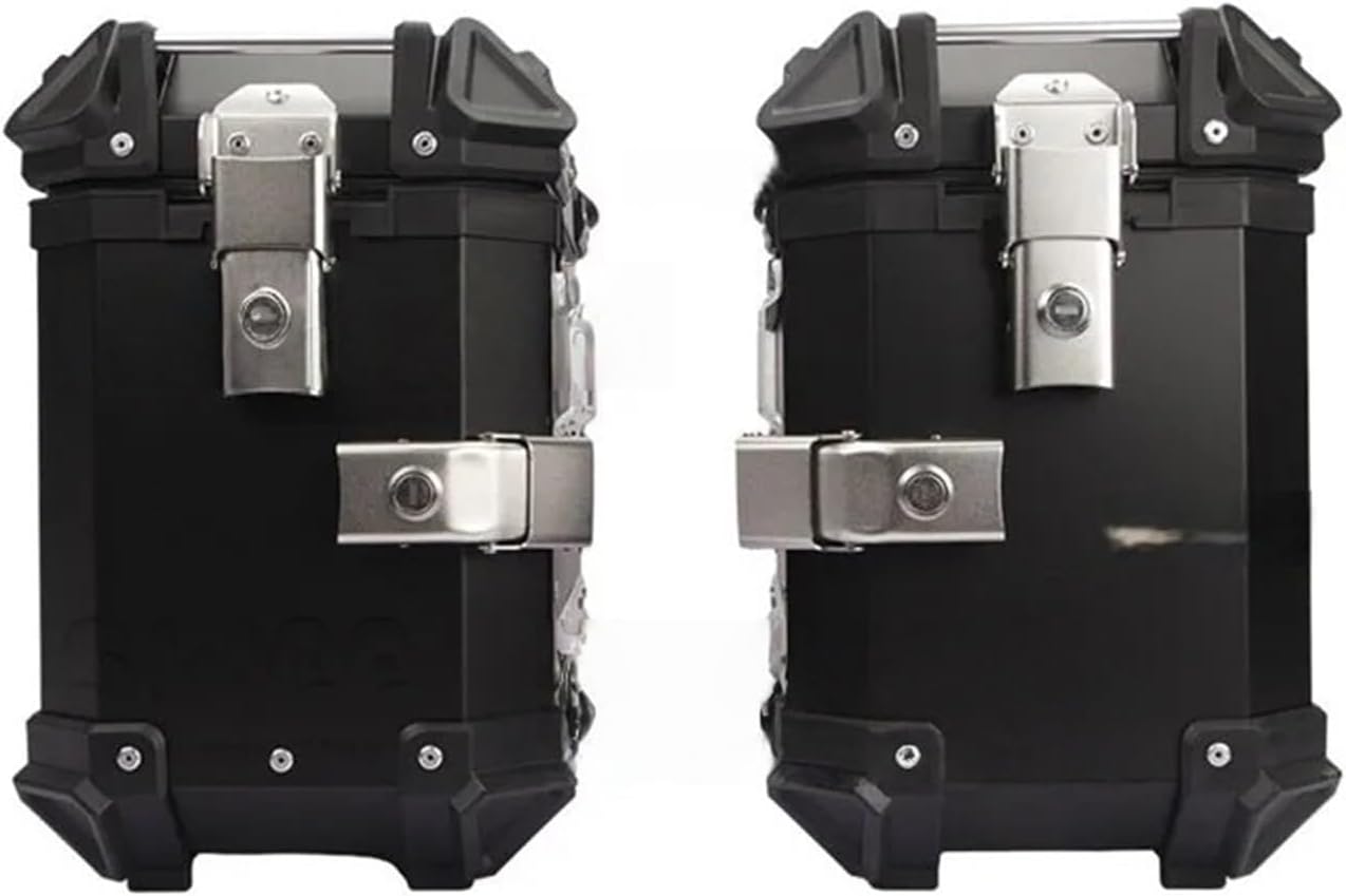 2pcs Universal Motorcycle 28L Rear Top Box Side Luggage Case Motos Storage Trunk Lock Travel Toolbox Aluminum Alloy Set(28L black A)