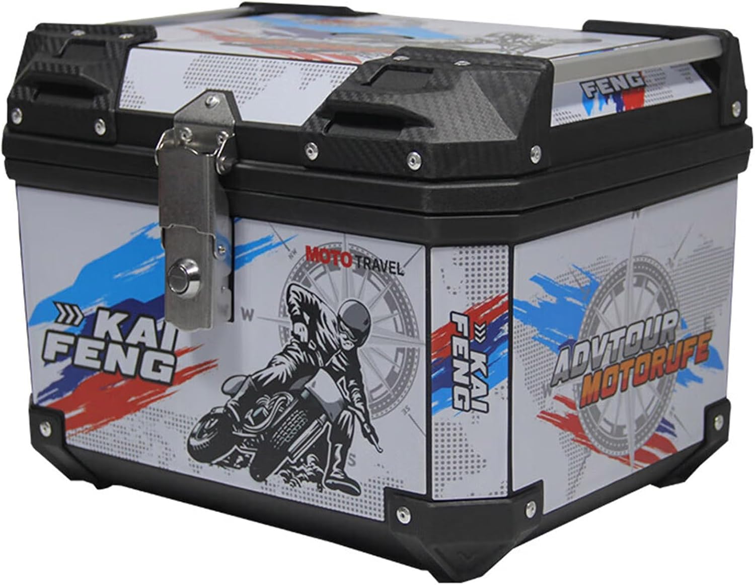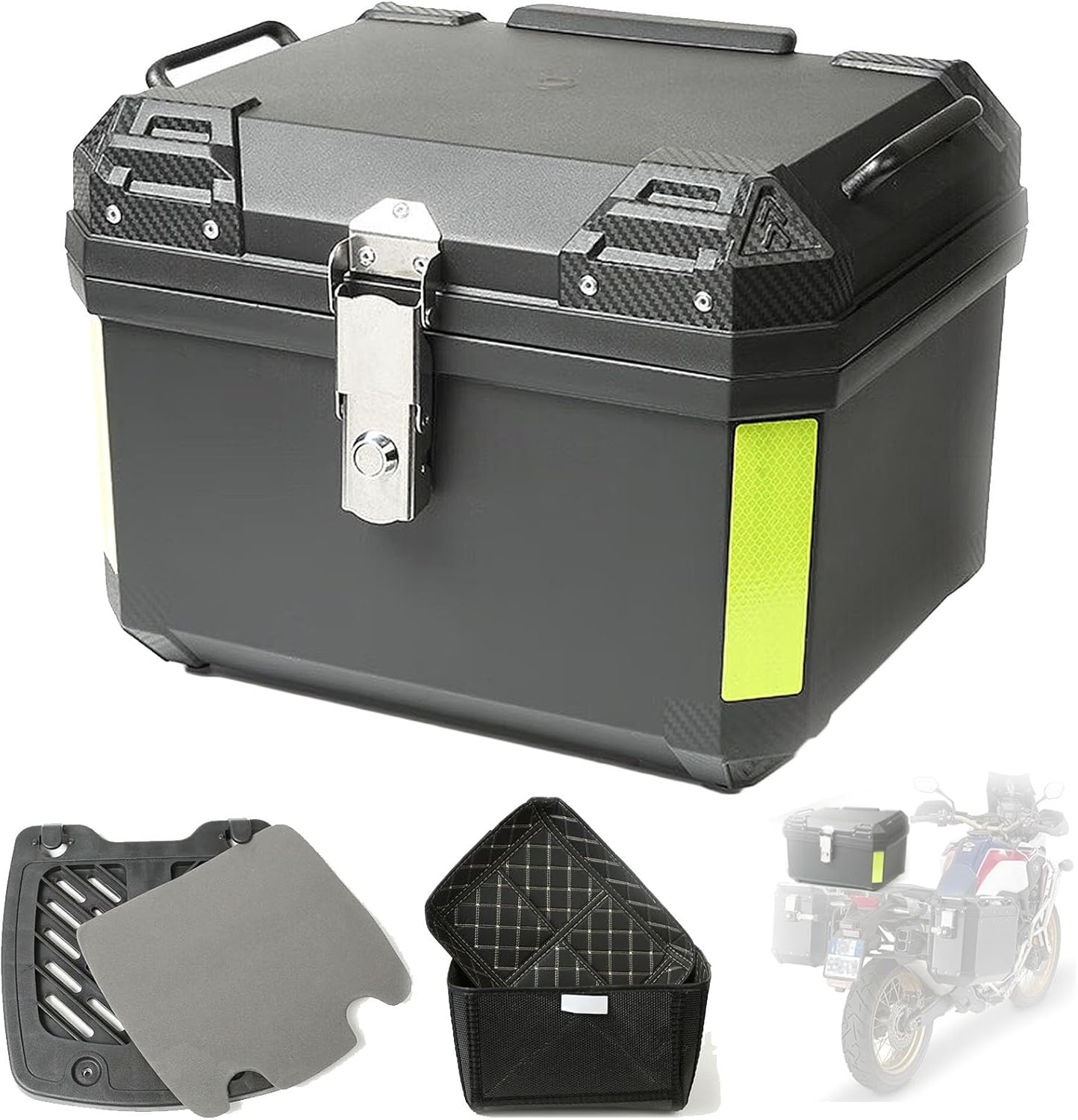 45L Aluminum Motorcycle Top Case, Universal Motorcycle Trunk Tail Box Waterproof Anti-theft Helmet Luggage Box With Shock-absorbing Liner & Base Plate