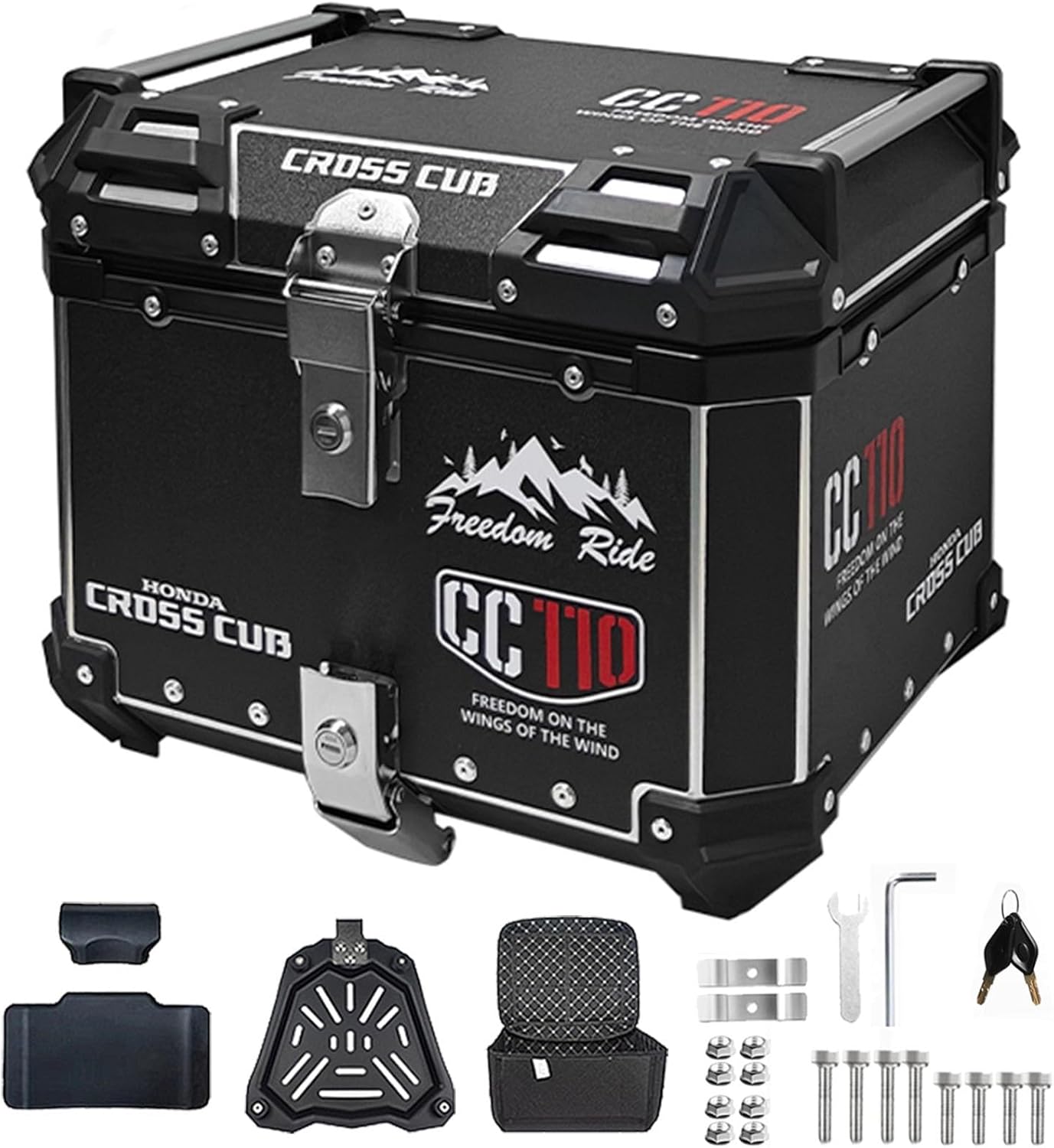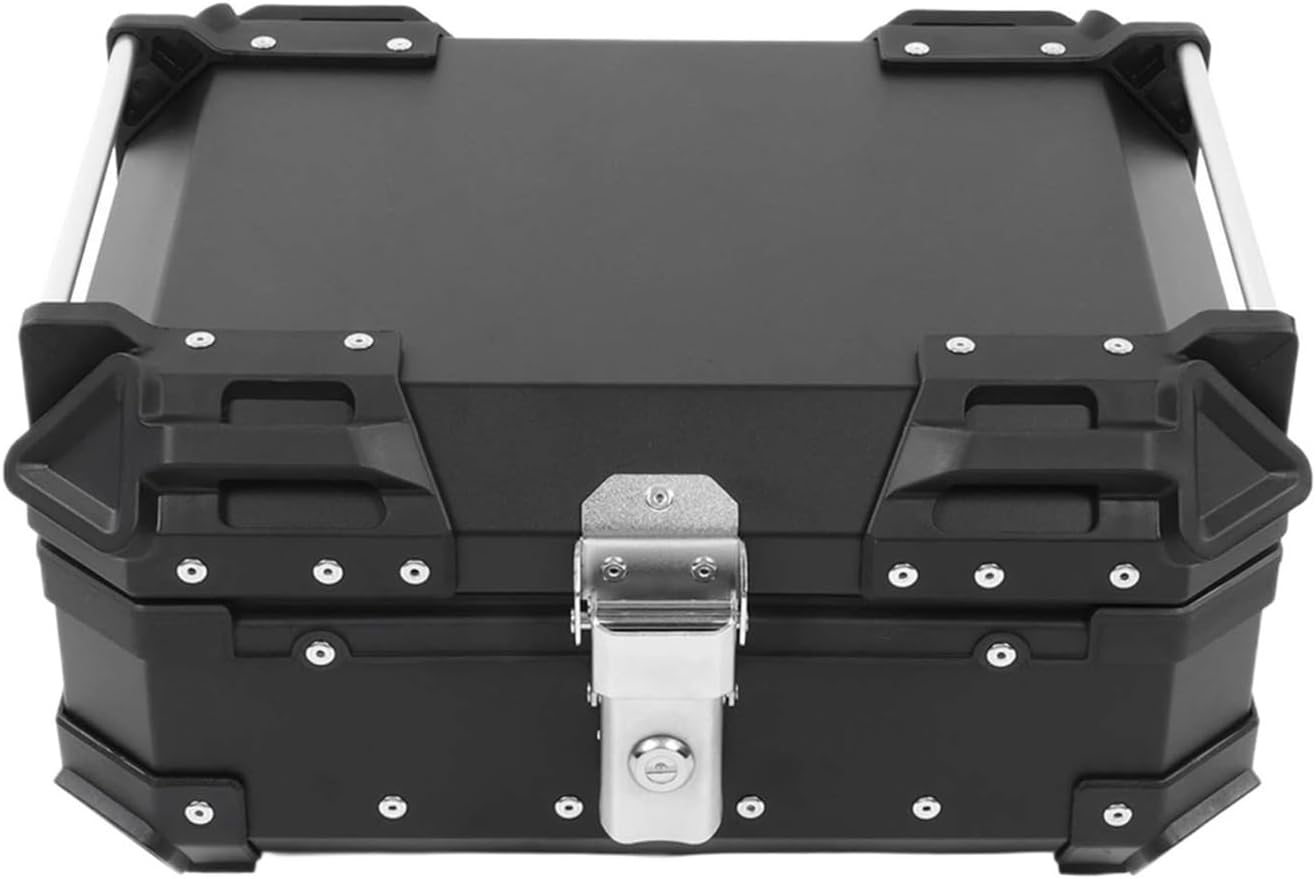 Motorcycle Top Case With Backrest, Aluminum Motorcycle Trunk Tail Box With Security Lock Large Luggage Helmet Box Universal Base Outdoor Scooter Storage Box(Black,55L)