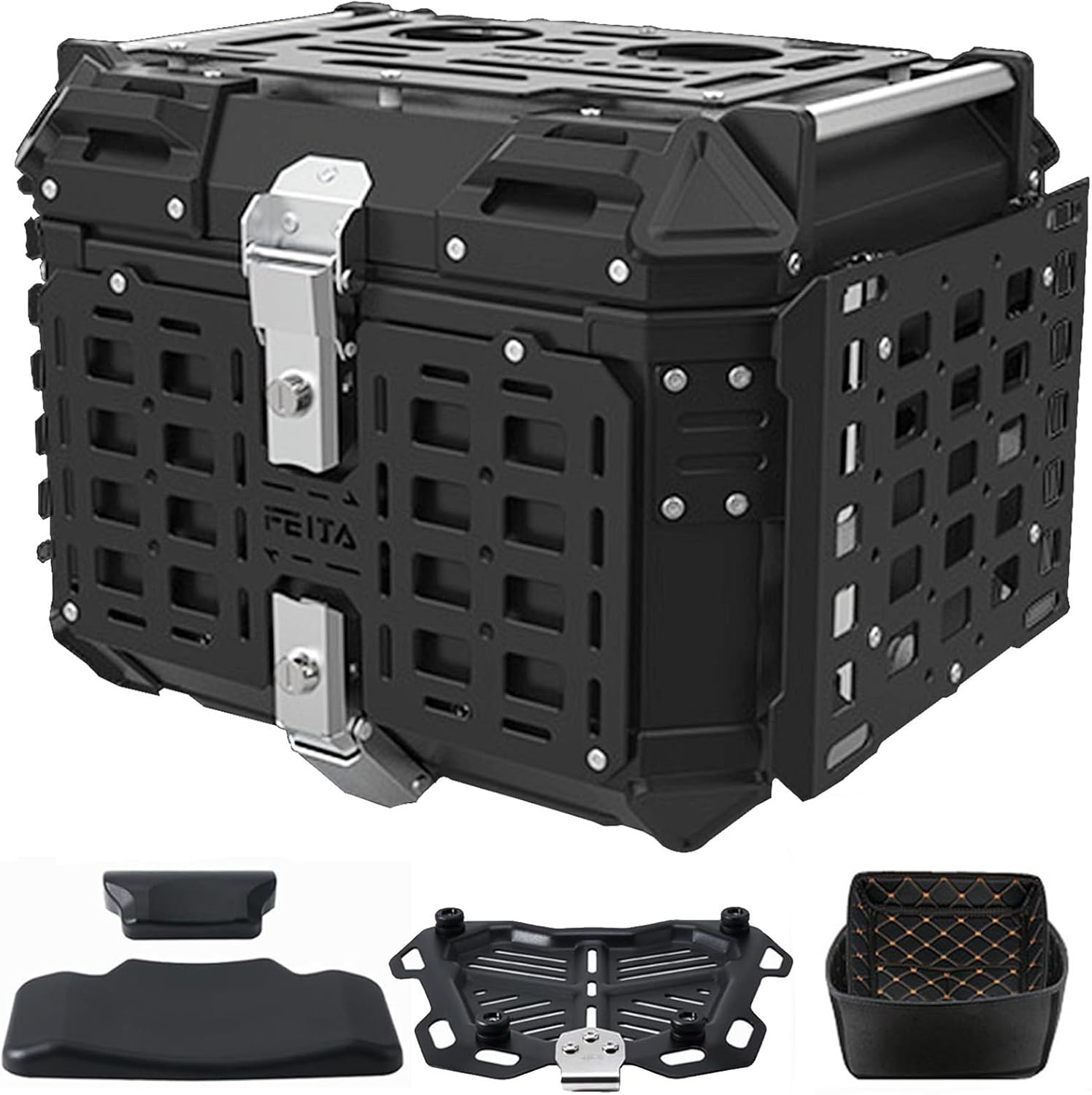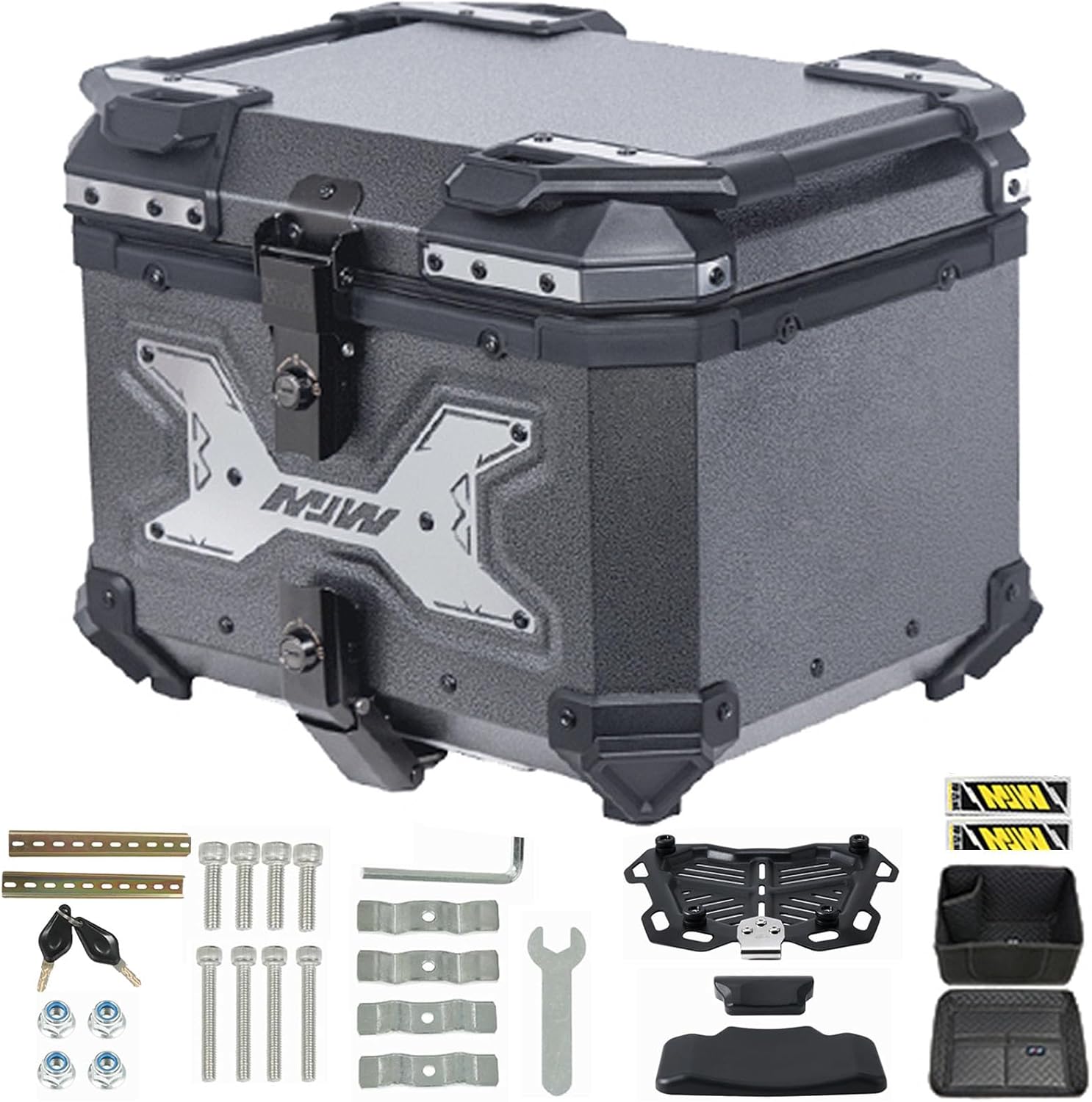 45L Aluminum Motorcycle Top Case, Waterproof Motorcycle Tour Tail Box Trunk With Backrest, Universal Scooter Helmet Box With Lining And Security Lock