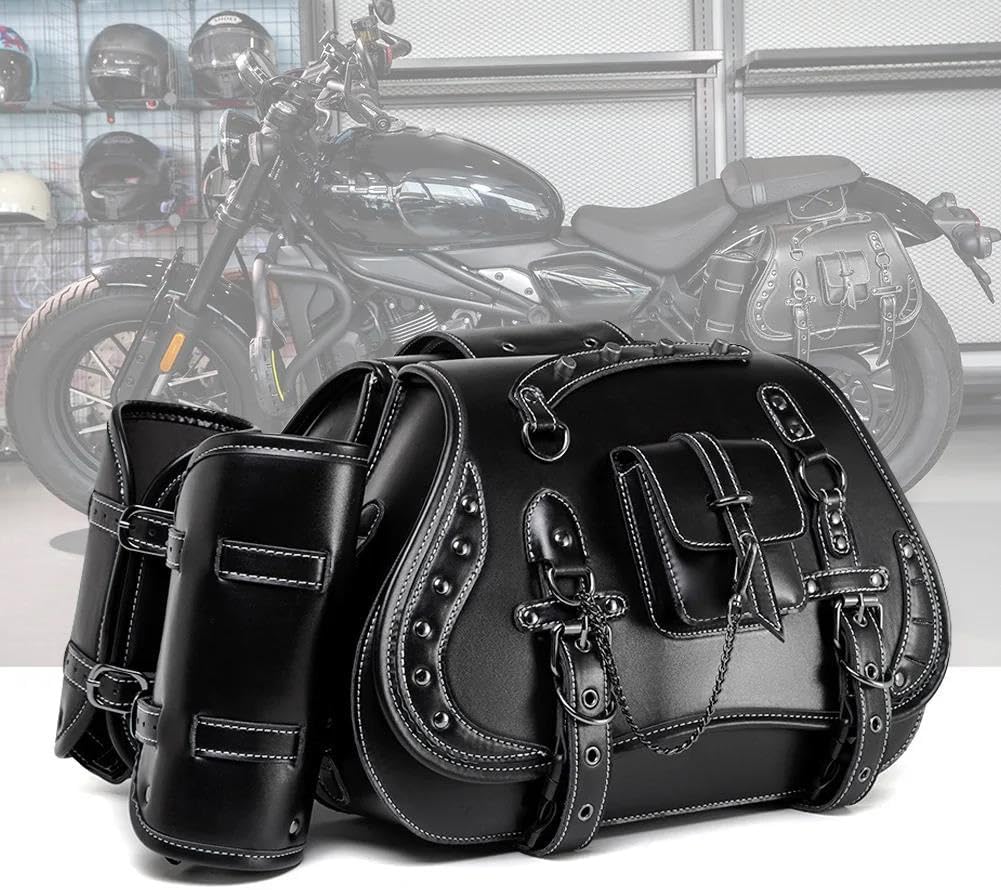 AEME Motorcycle Saddlebag Throwover Saddlebags for Suzuki PU Leather with Cup Side Gear Bag(C3)