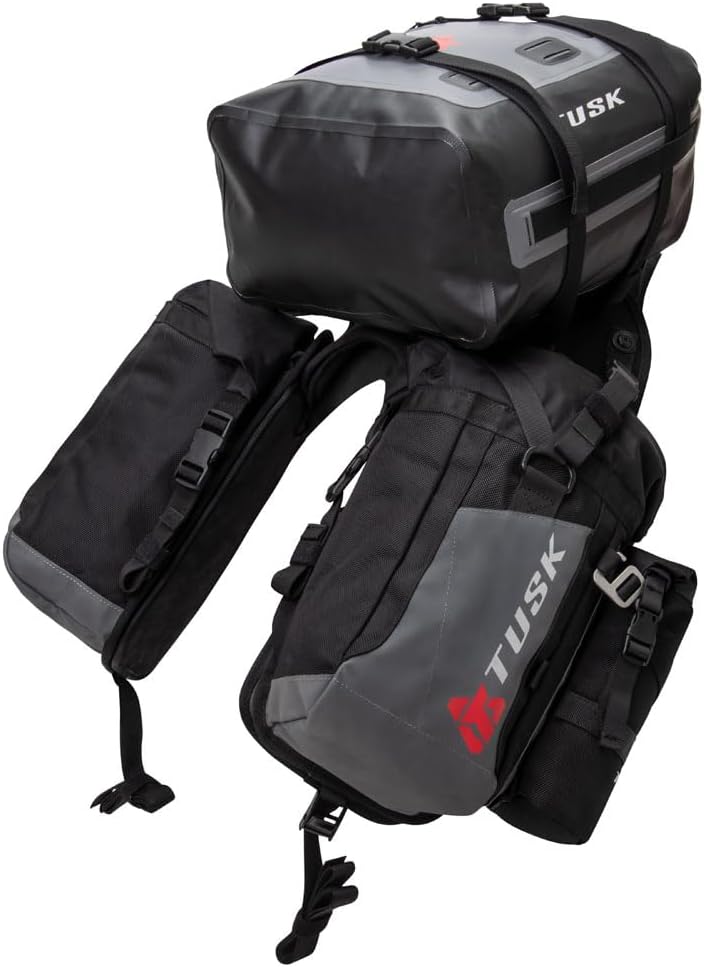 TUSK Excursion Rackless Off-Road Motorcycle Luggage System w/ Small Dry Duffel & Bottle Holders, Black/Grey, 15L, Soft Shell, Buckle Closure, Rack Mount, Compatible with Yamaha TENERE 700 2021-2024