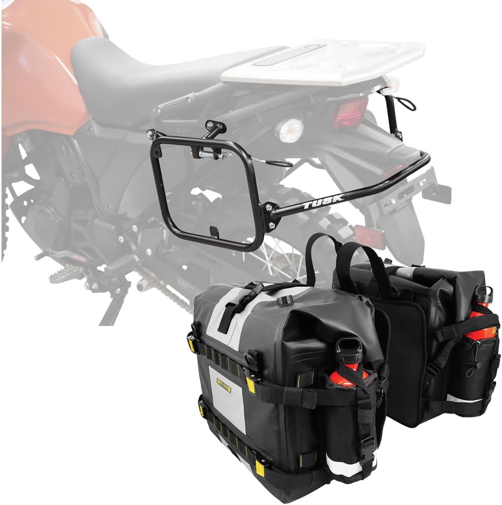 TUSK Pannier Racks with Nelson Rigg Hurricane Dry Saddlebags Black Compatible with Kawasaki KLR650/ABS/Adventure ABS 2022-2026KLR650 S/S ABS 2023-2026