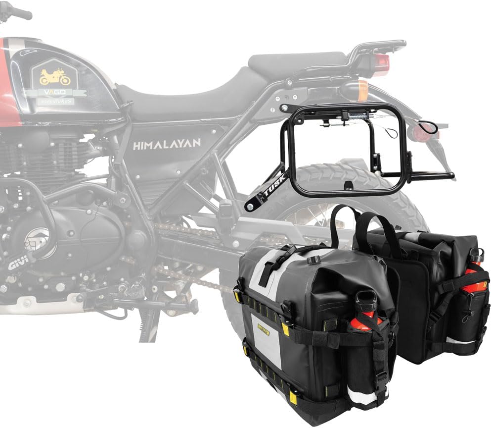 TUSK Pannier Racks with Nelson Rigg Hurricane Dry Saddlebags Black
